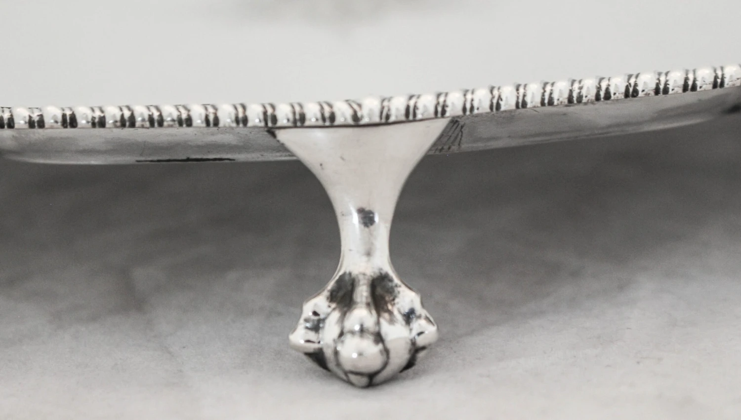 We are proud to offer you this sterling silver salver, hallmarked London 1865. It stands on four lion paws and …