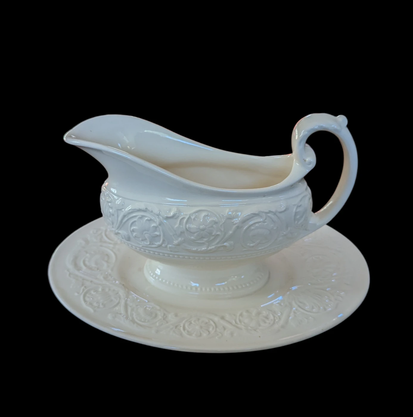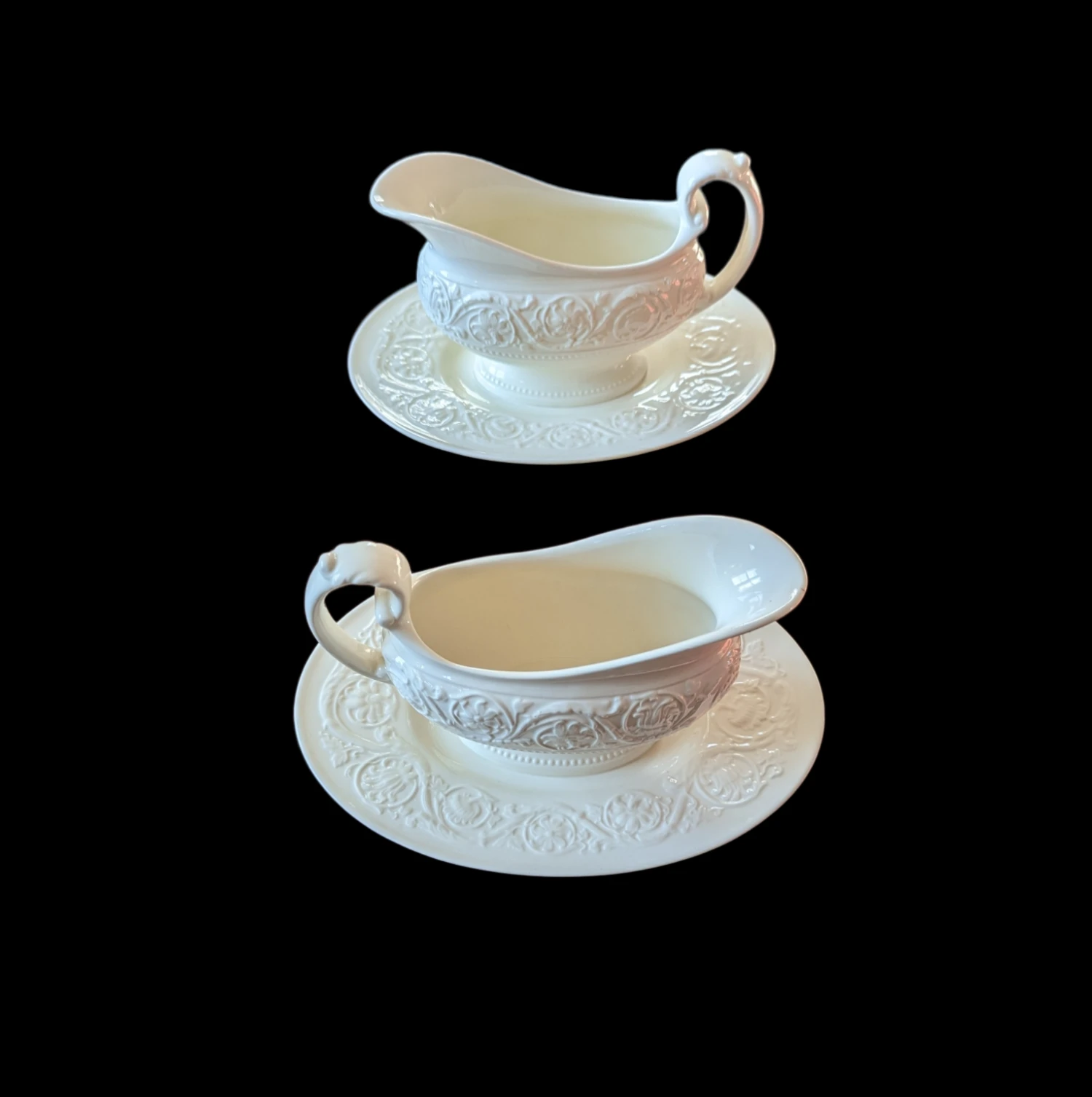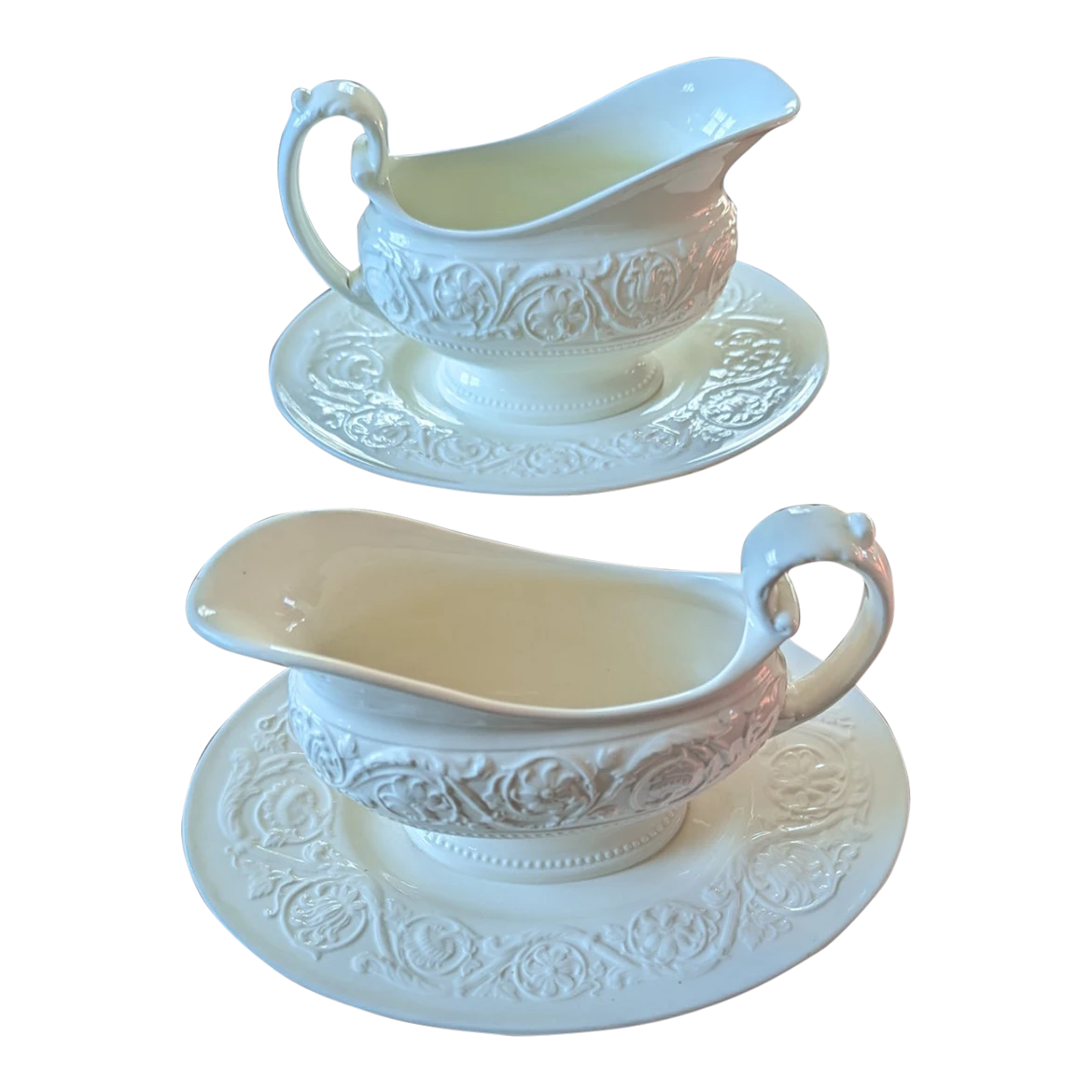 Patrician was one of Wedgwood’s most popular embossed creamware patterns, and it remains a perennial favorite today, more than four decades after it was retired. These sauce boats are perfect for a lazy afternoon brunch or a formal dinner, as it goes with literally everything! They are Wedgwood’s very early production from the 1920s.