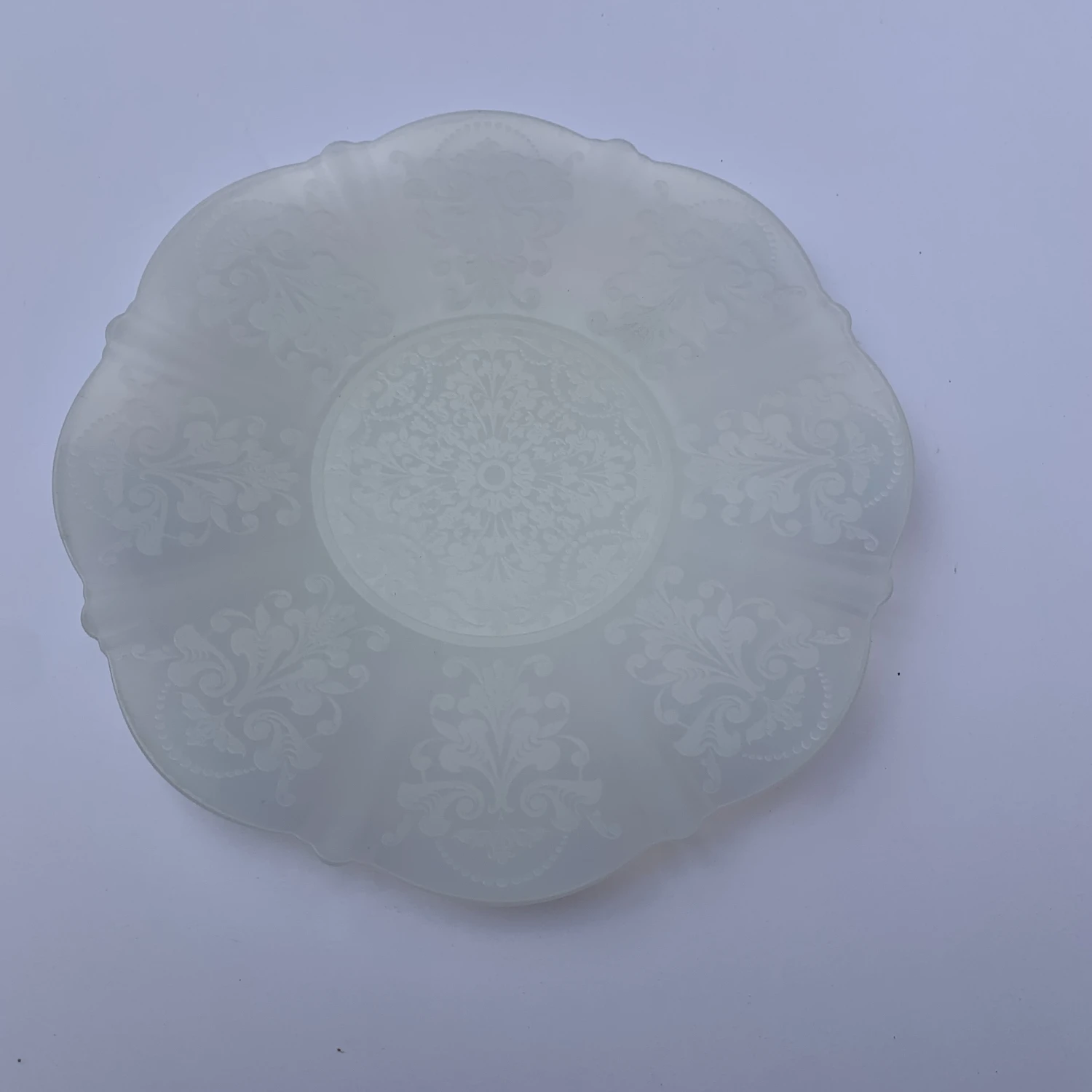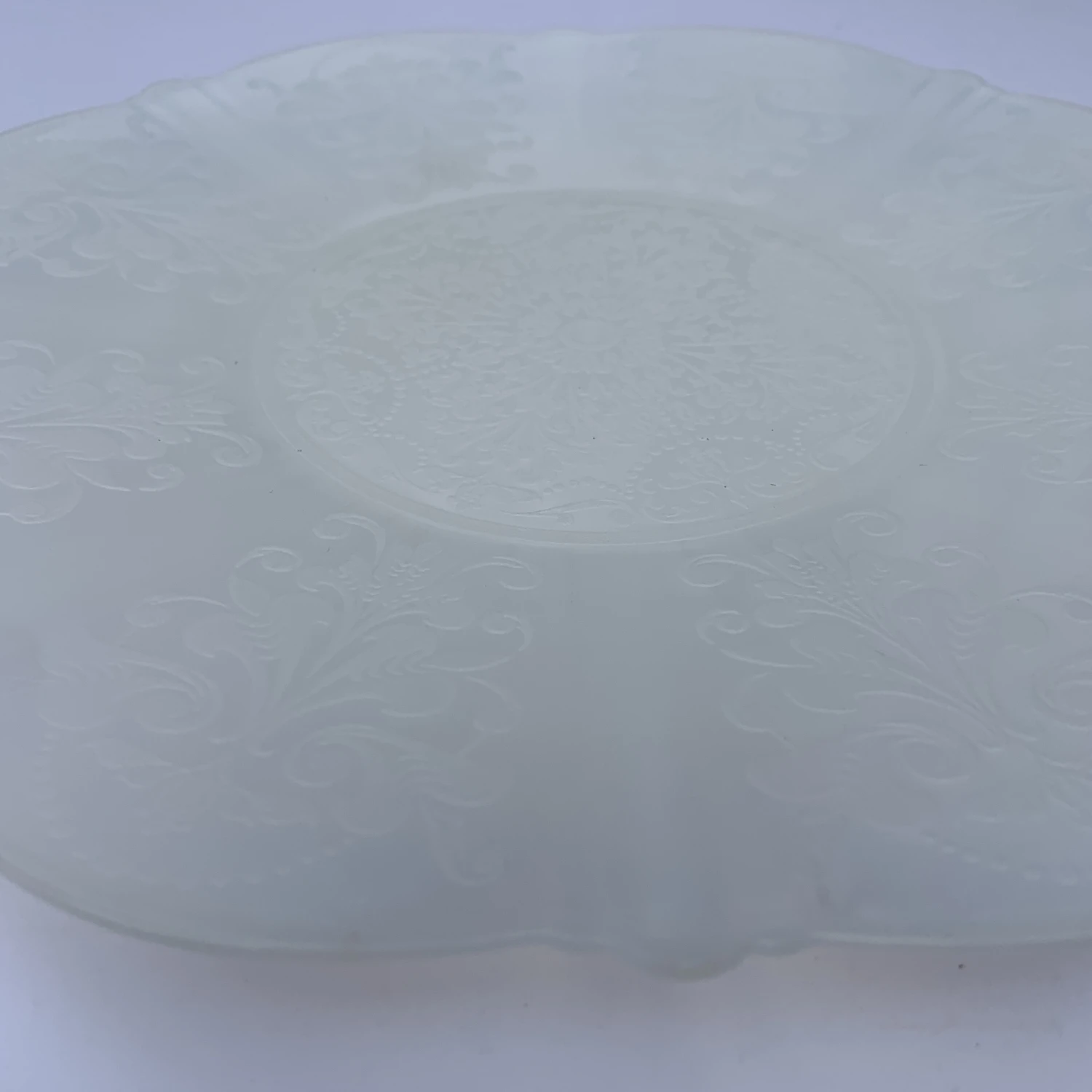 A fairly translucent chop plate platter to serve your delicacies designed by MacBeth Evans.