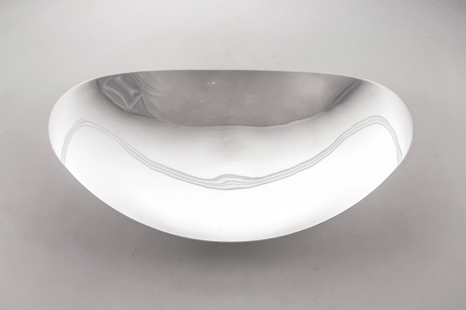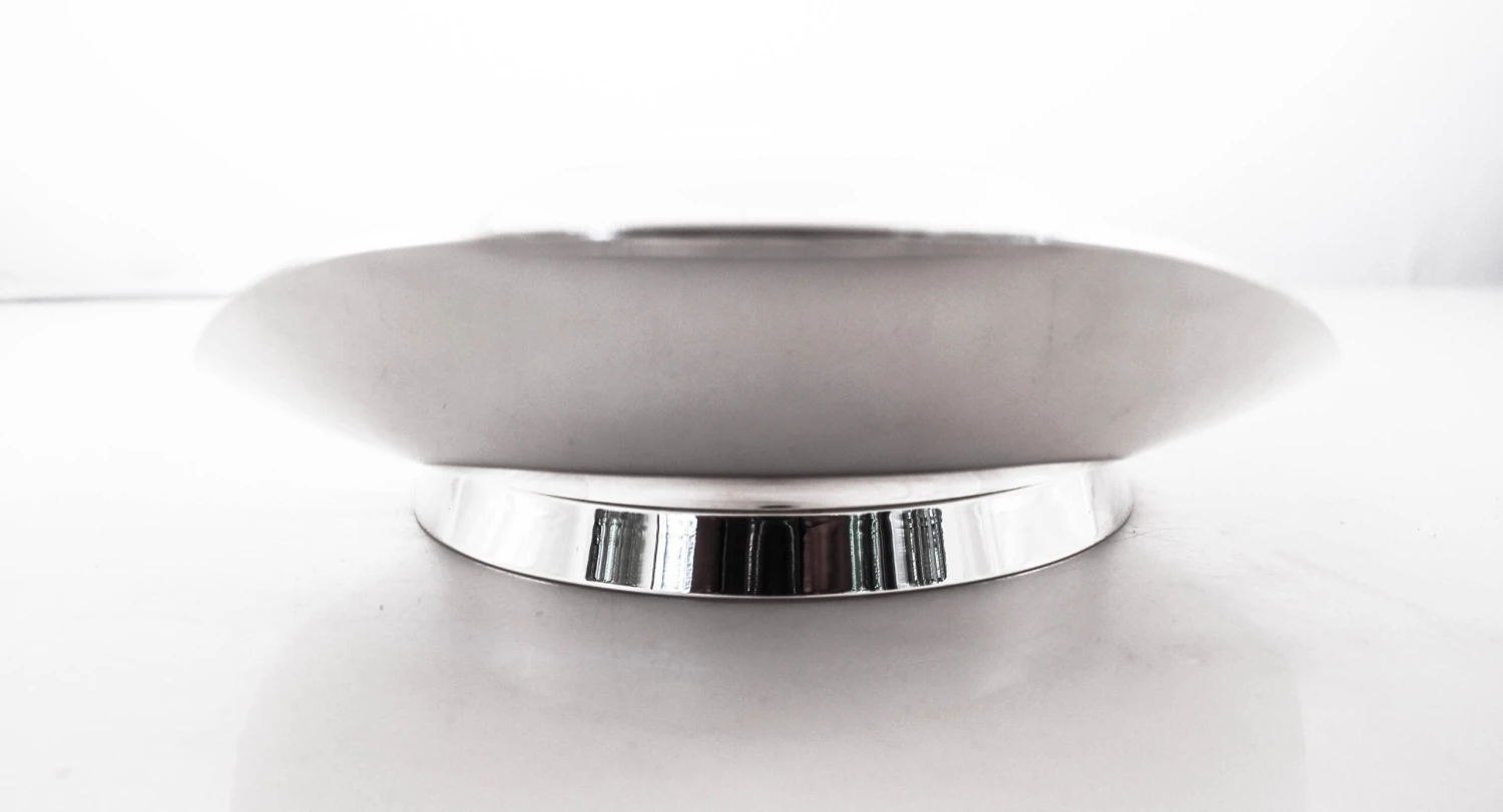 We are so happy to offer this sterling silver Mid-Century Tiffany dishes. It has an oval shape and curves upwards on the ends. It stands on a pedestal (not weighted) thereby off the surface. It has an that uber-sleek midcentury look that Tiffany was so famous for; way before modern and sleek was popular Tiffany was designing and producing it. Simply breathtaking!