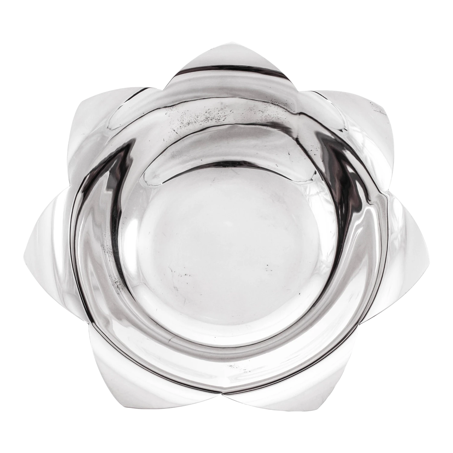 This sterling silver bowl reminds me of a blossoming flower. Tiffany and Company could take a simple design and transform it into this sharp looking bowl. Seven petals along the edge of this sleek midcentury bowl gives it all the design it needs. No etchings, or any other decorations needed; simple, modern and timeless.