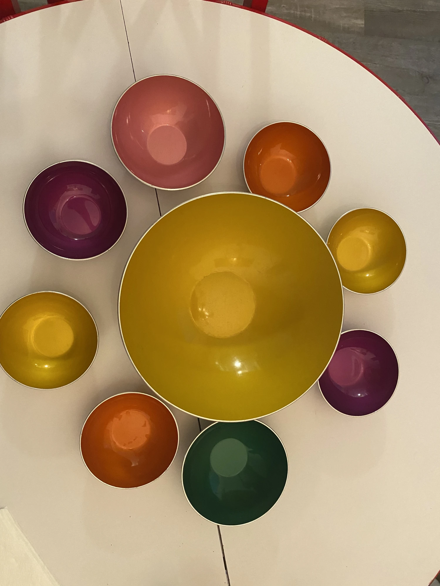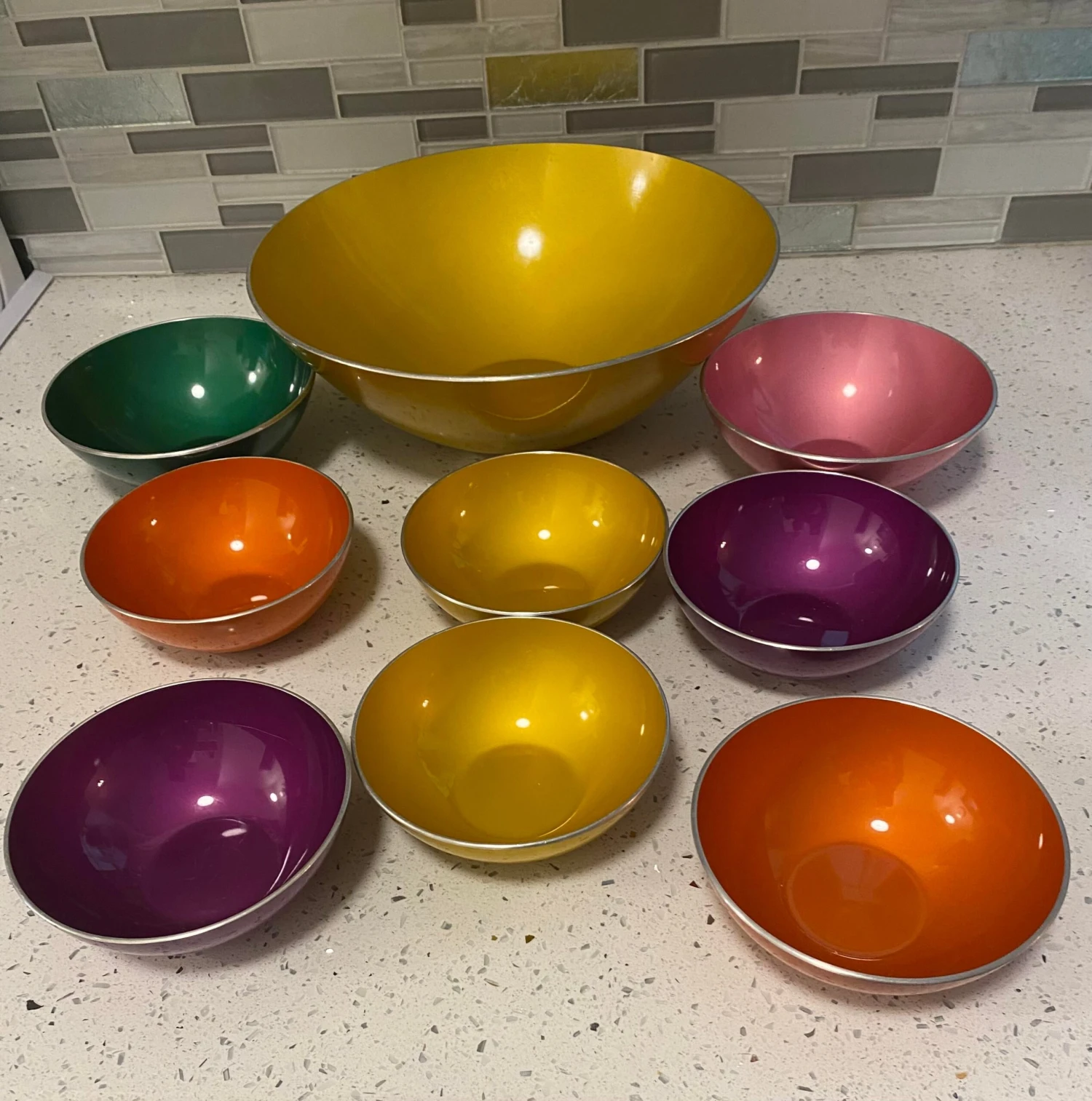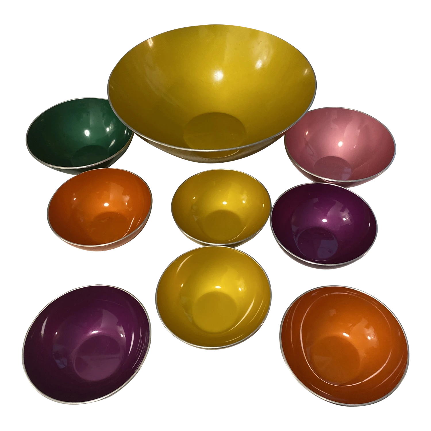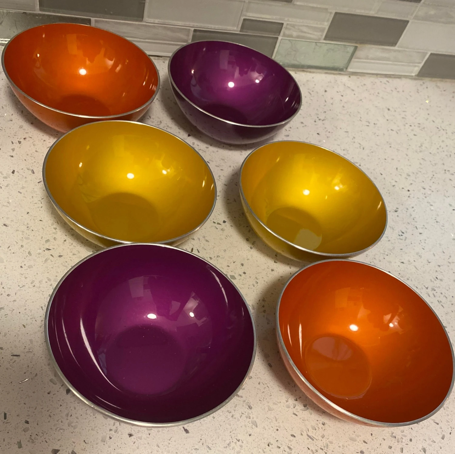 6 small bowls (purple, yellow, orange-2 of each) 5″ diameter by 1.75″ height