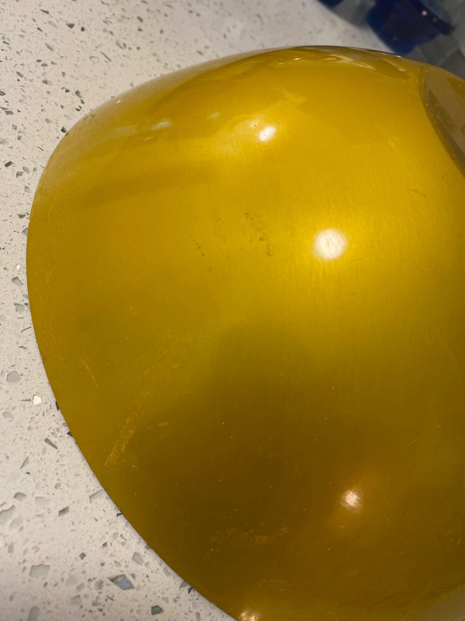 Large yellow bowl has a couple of scuffs, very slight