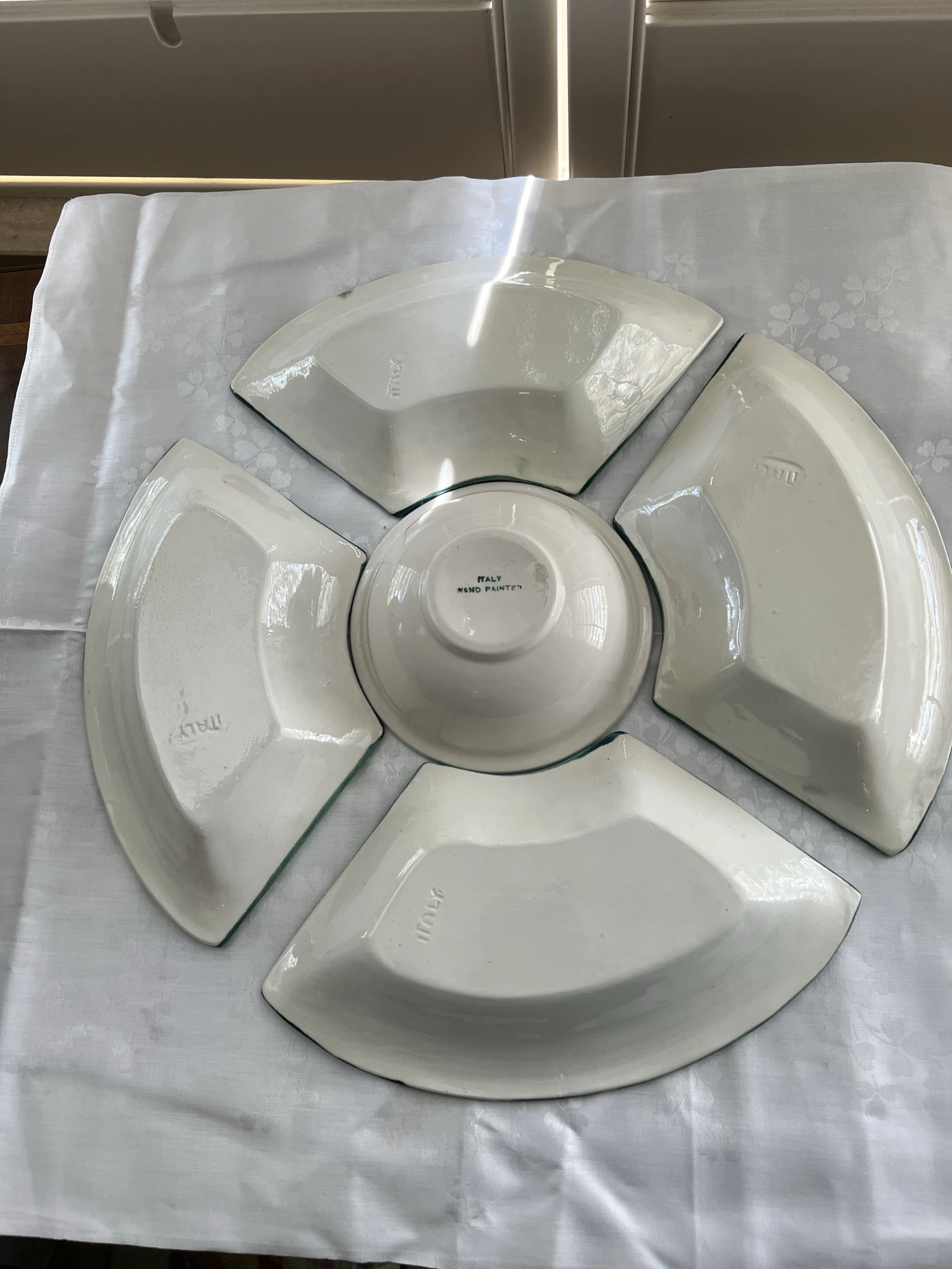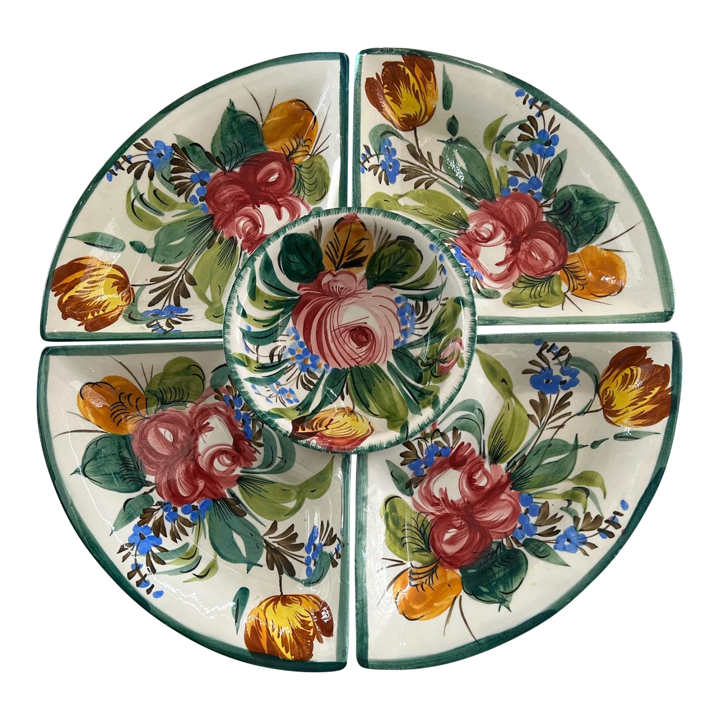 Beautiful Italian Ceramic Lazy Susan, 5 pieces with beautiful hand painted floral design Made in Italy. Mounted on a revolving …