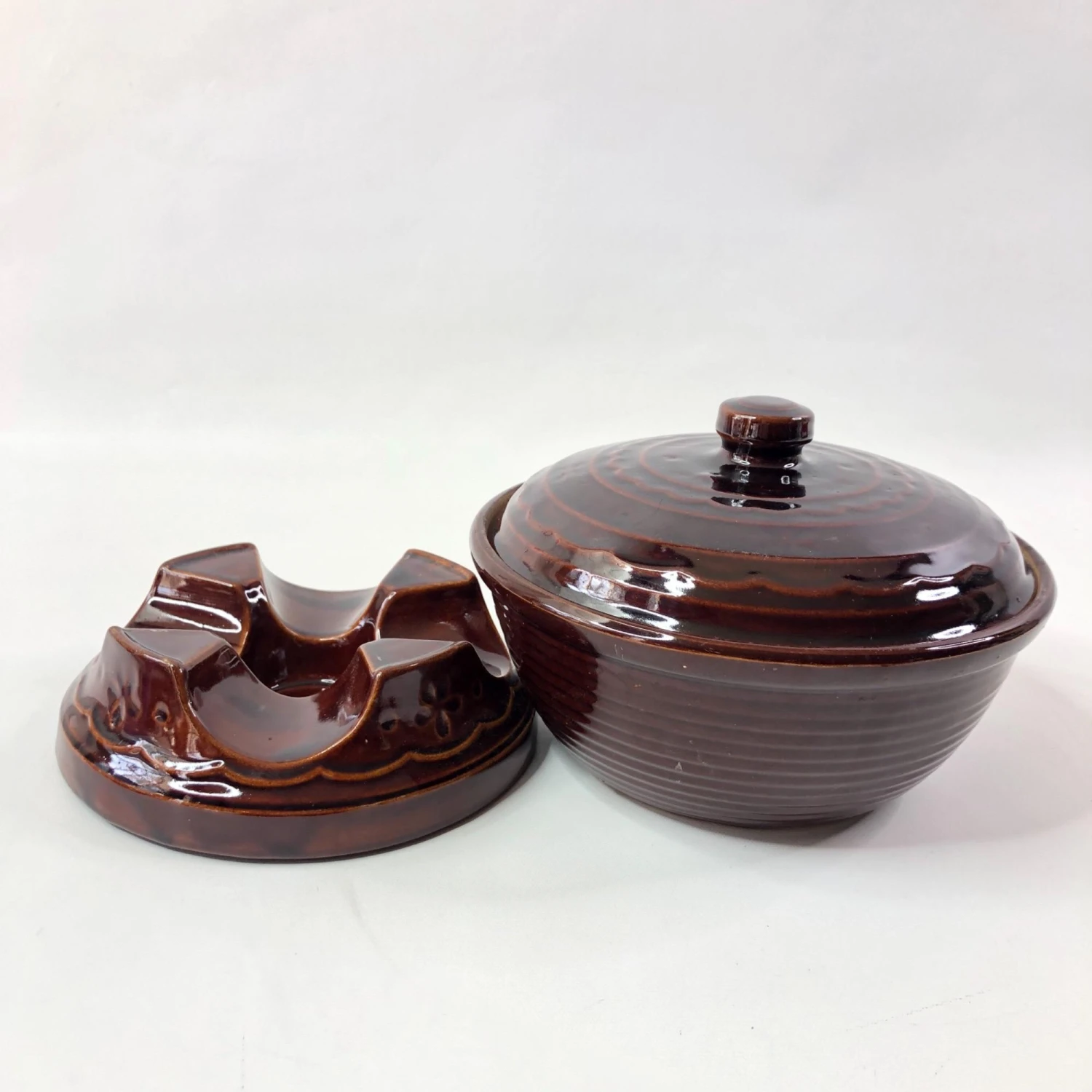 Some history: In 1906, 7 potteries merged together to form the Western Stoneware Company in Monmouth, Illinois. They were: Weir Pottery, Monmouth Pottery, Macomb Stoneware Co., Macomb Pottery Co., D Culbertson Stoneware Co., Clinton Stoneware Co. and the Fort Dodge Stoneware Company. Western Stoneware produced the Warm Colorado Brown daisy dot line of Marcrest dinnerware (and maybe some of the pastels as well). They closed their doors in 2006 after 100 years of operation, but quickly re-opened, thanks to 3 original employees.