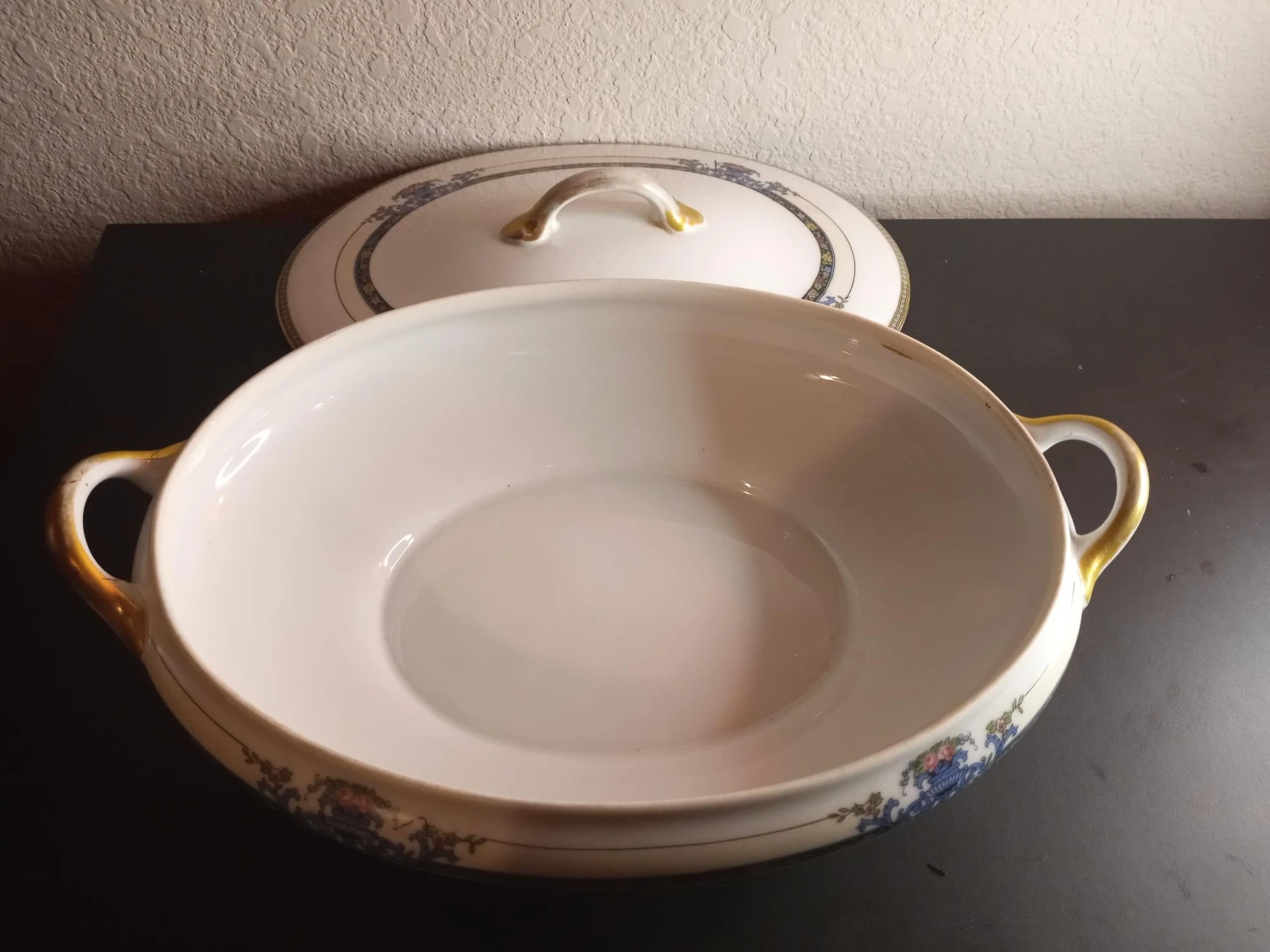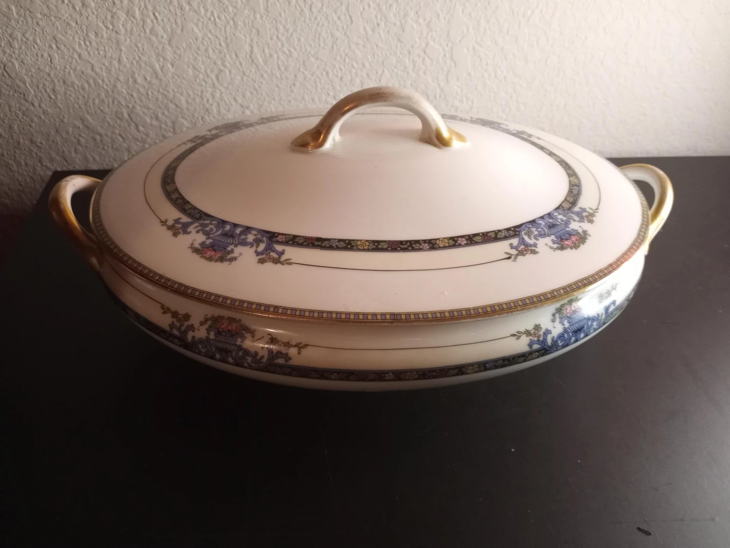 It is a Noritake Handpainted 10″ Tureen Bowl. Highly collectible. Pricured at an estate auction. Can be paired with other Noritake or Limoge pieces.
