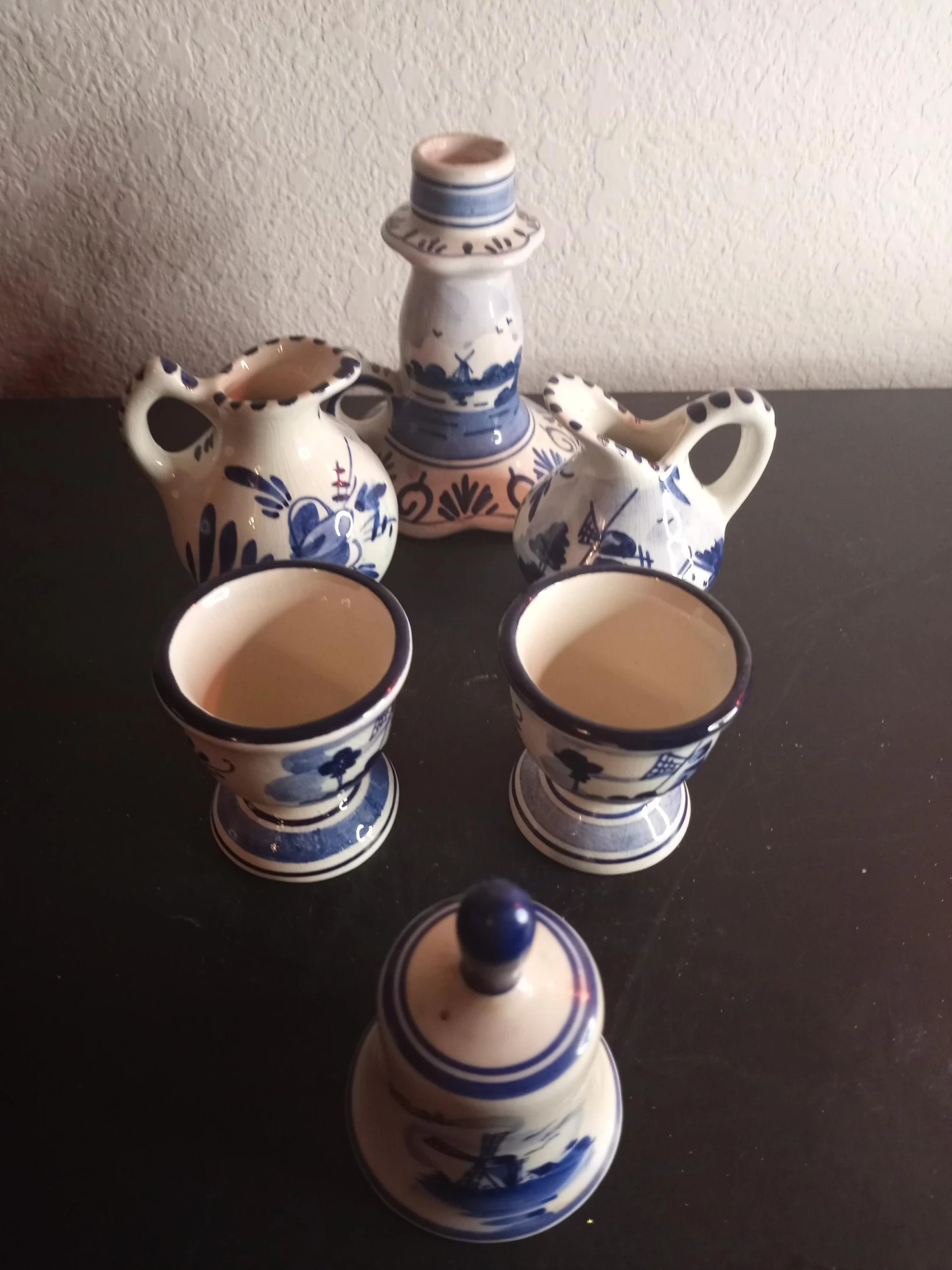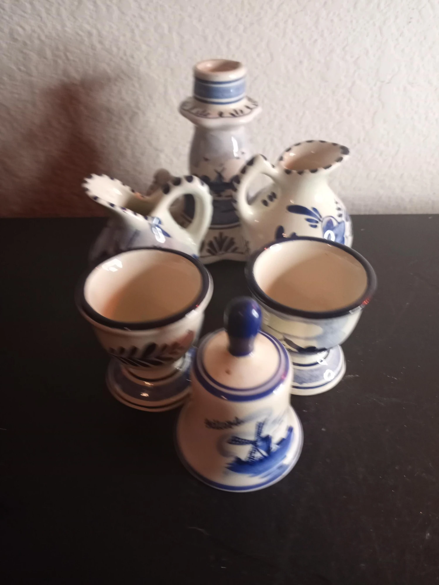 Includes Candle Holder, 2 Miniature Vases, 2 Egg Cups & Single Bell