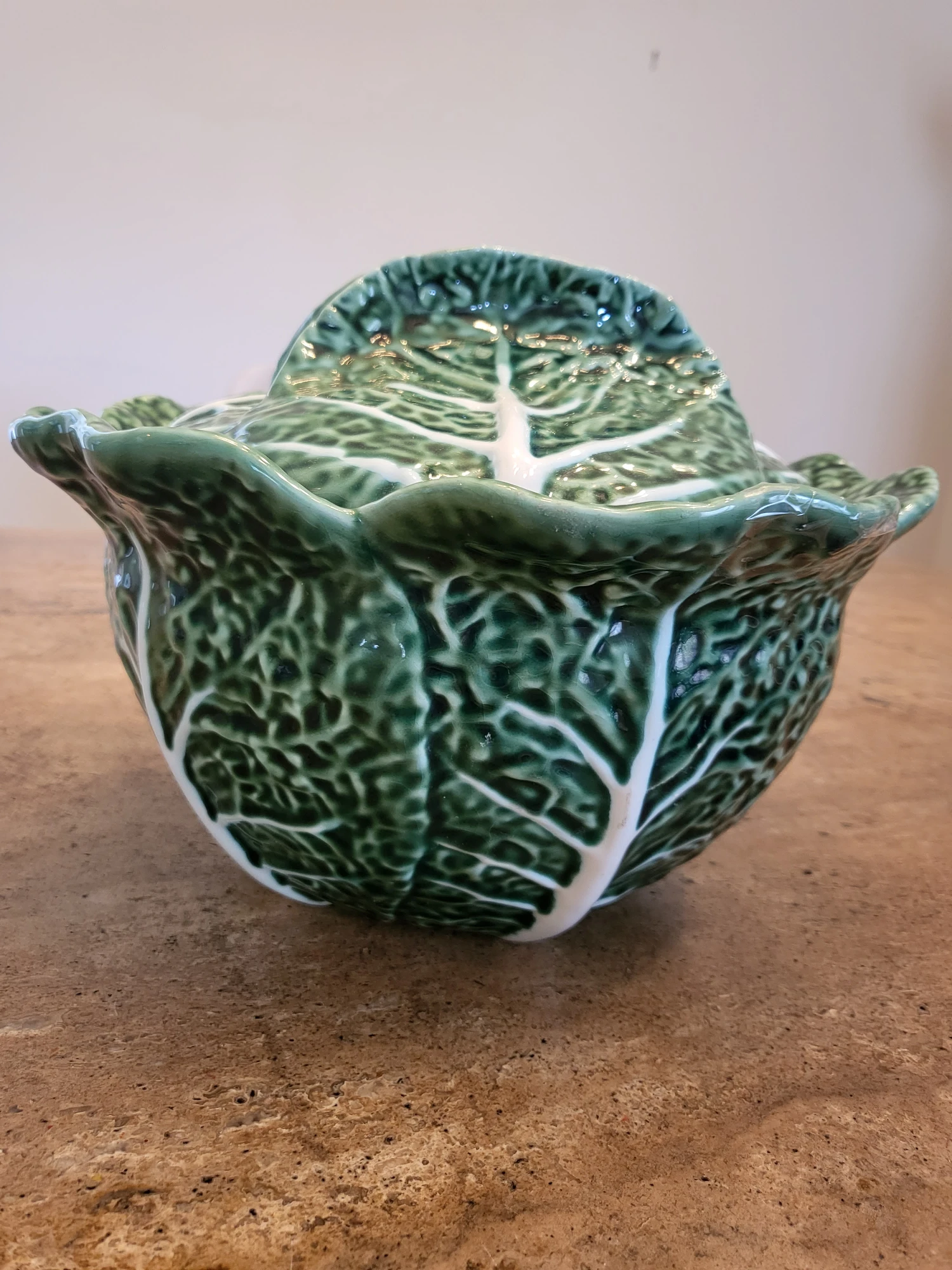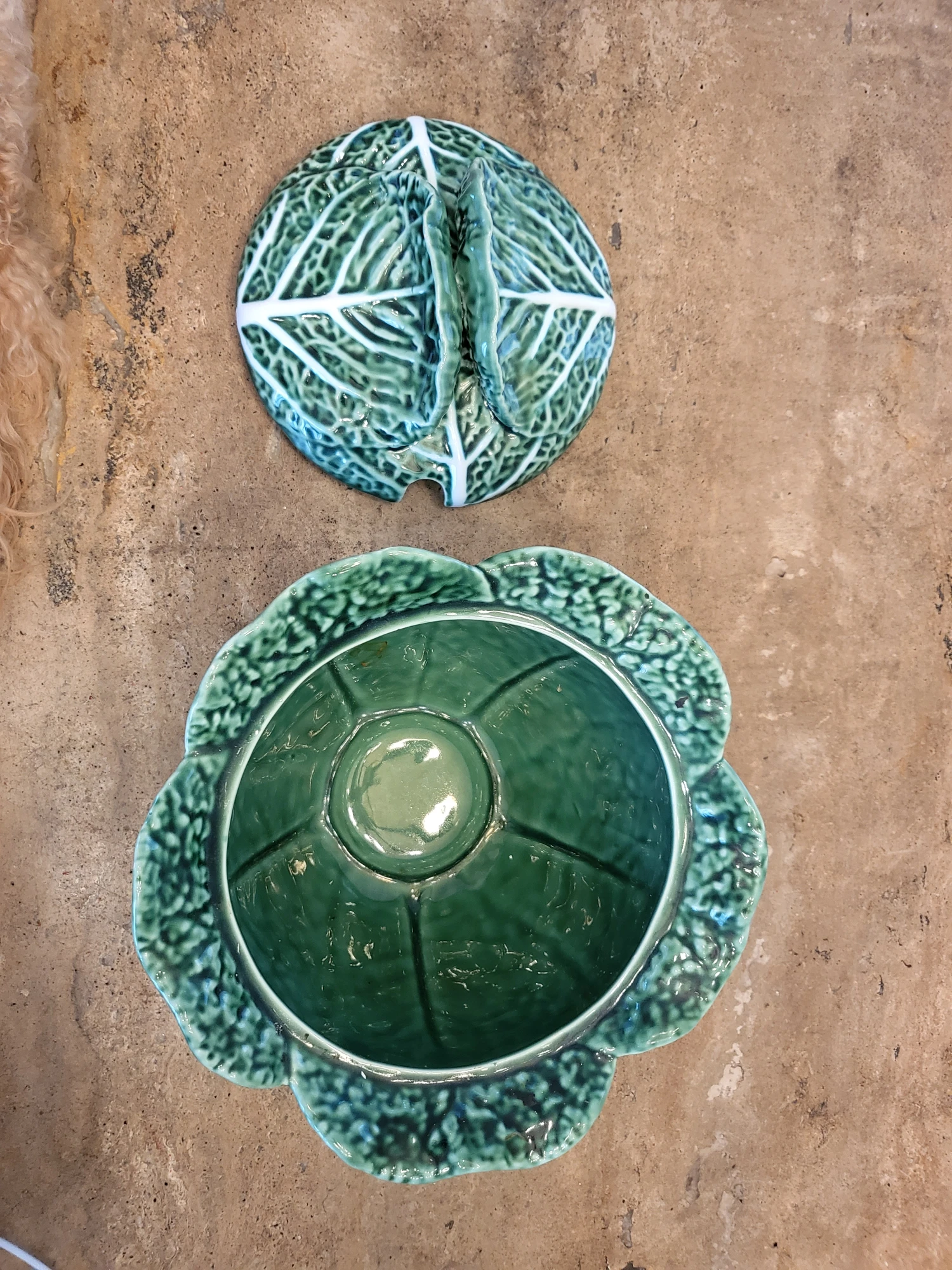 Hand painted cabbage tureen with matching lid made in Portugal for John Wanamaker.