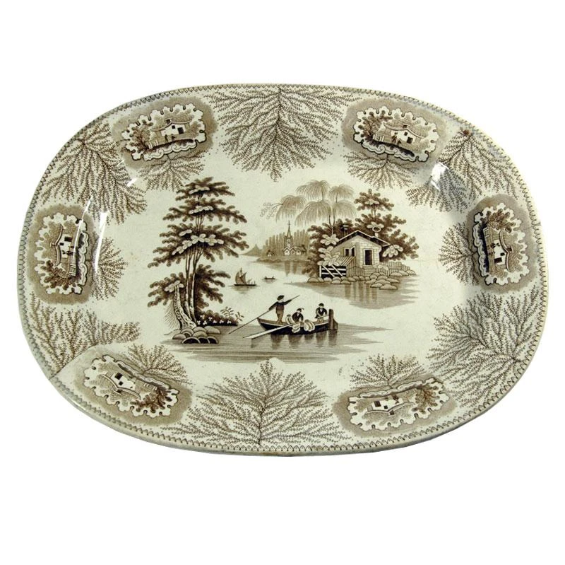 19th Century Faience Serving Platter from John Wood, 1890s, in Worn conditions. Designed 1890 to 1919 This piece has an attribution mark,