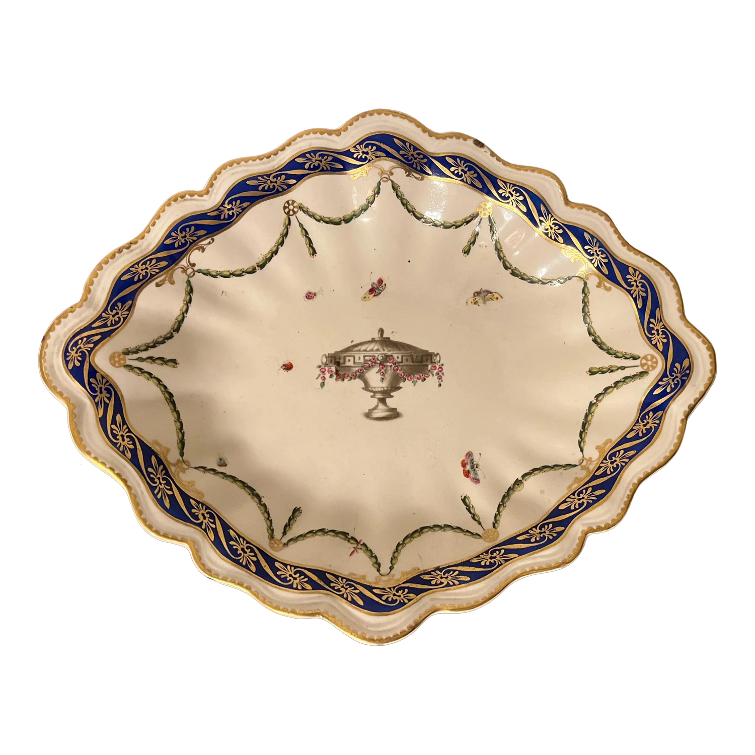Antique 18th century Derby porcelain oval serving dish or low bowl. Decorated with an urn surrounded by insects and butterfly …