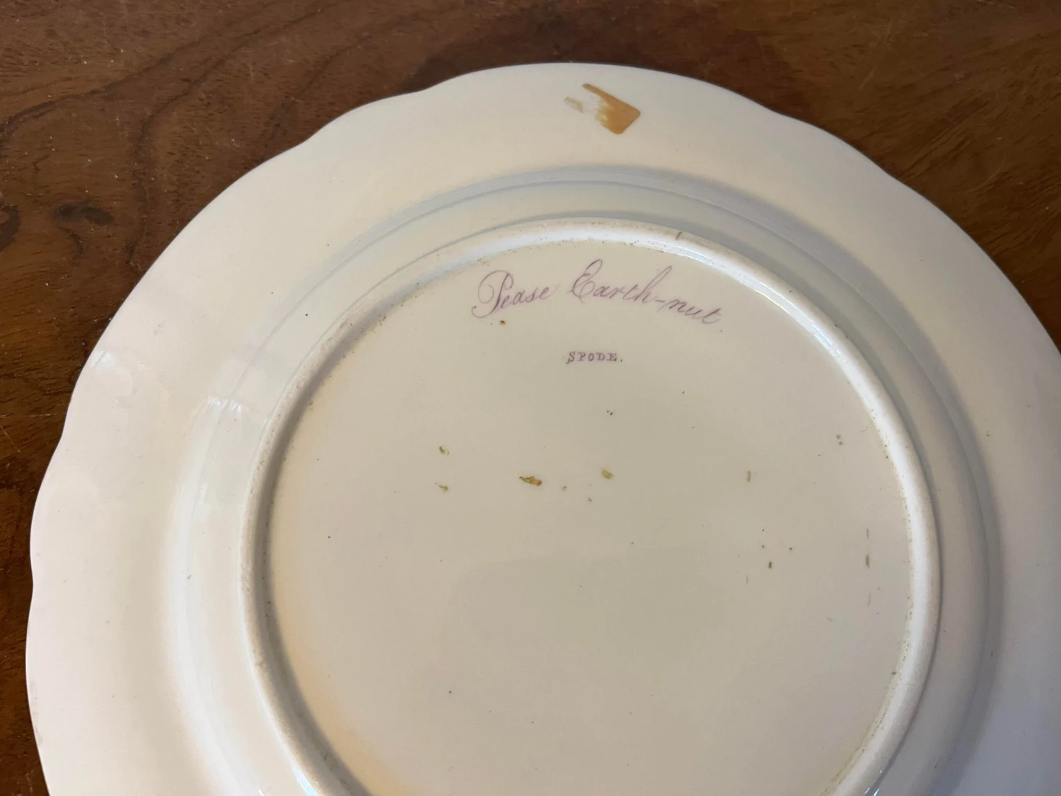 Antique early 19th century Spode porcelain botanical plate decorated with hand painted named specimen – Pease Earth-nut. The border nicely …