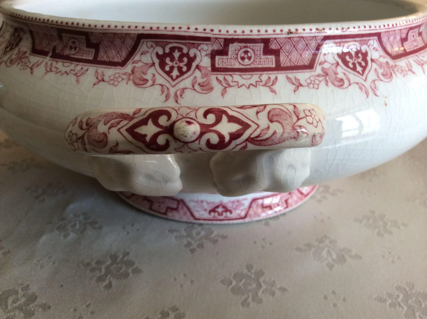 Very nice and good size bowl/tureen in the Maroc pattern in burgundy. It is very well preserved for its age …