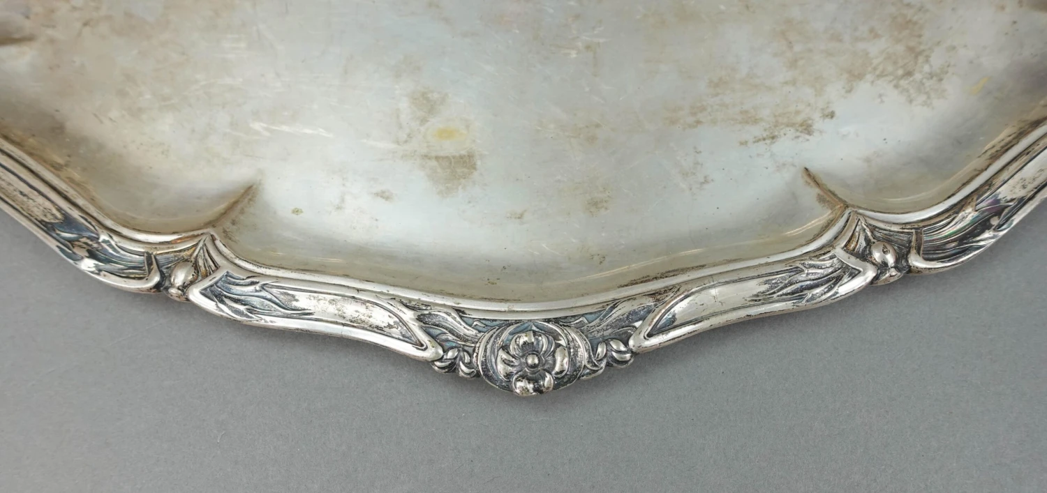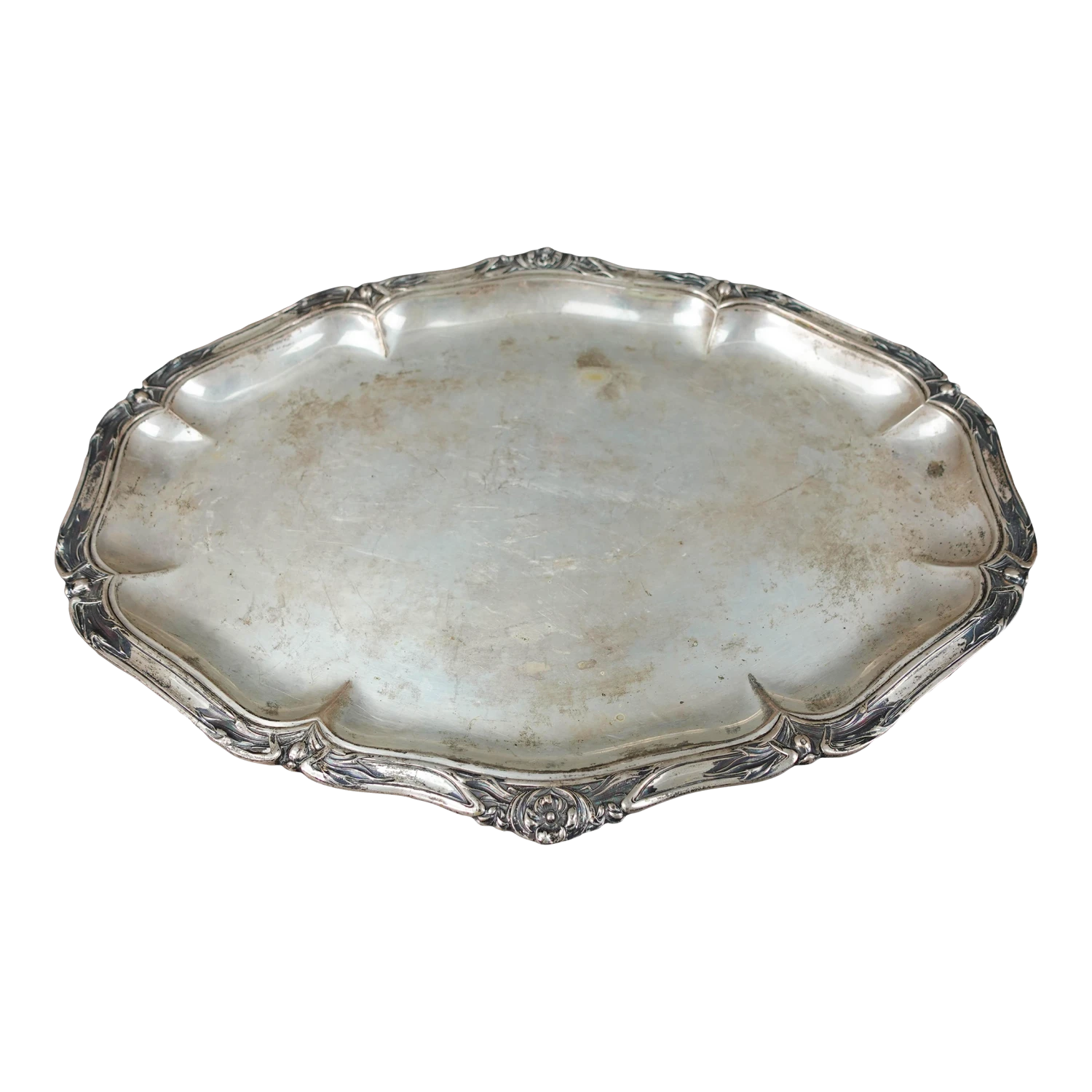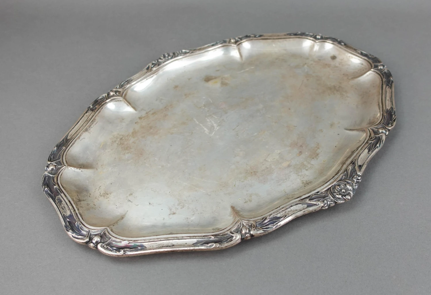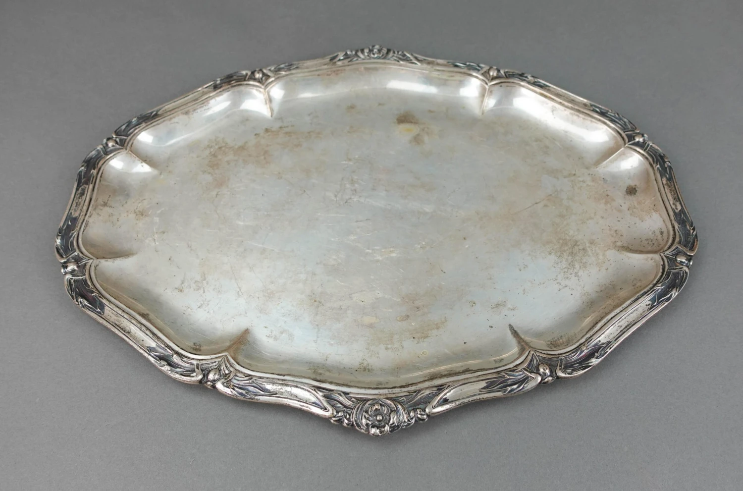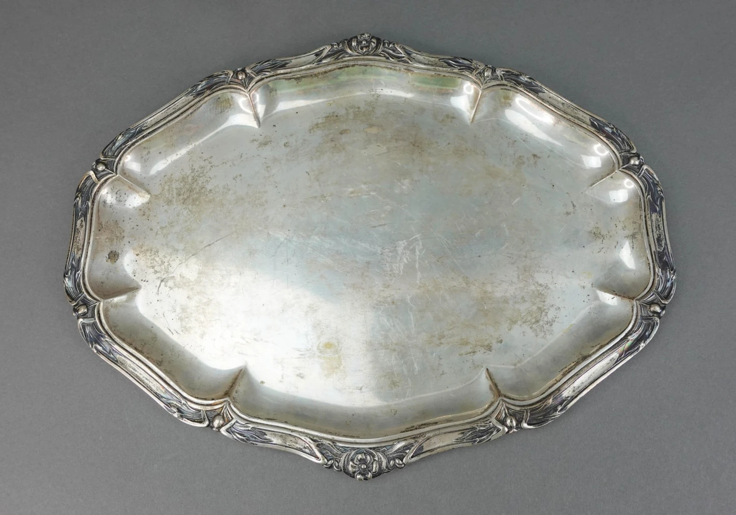 Bruckmann & Sohne German Antique 800 Silver Art Nouveau Floral Oval Serving Platter Tray 814 Grams.