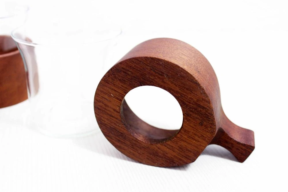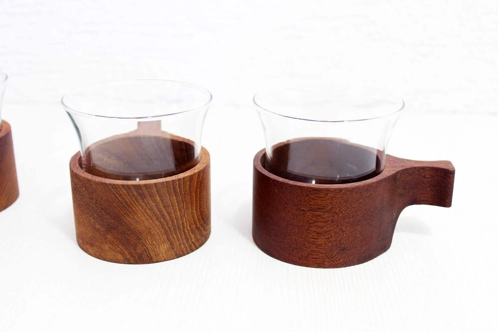 Set of 6 teak cups.