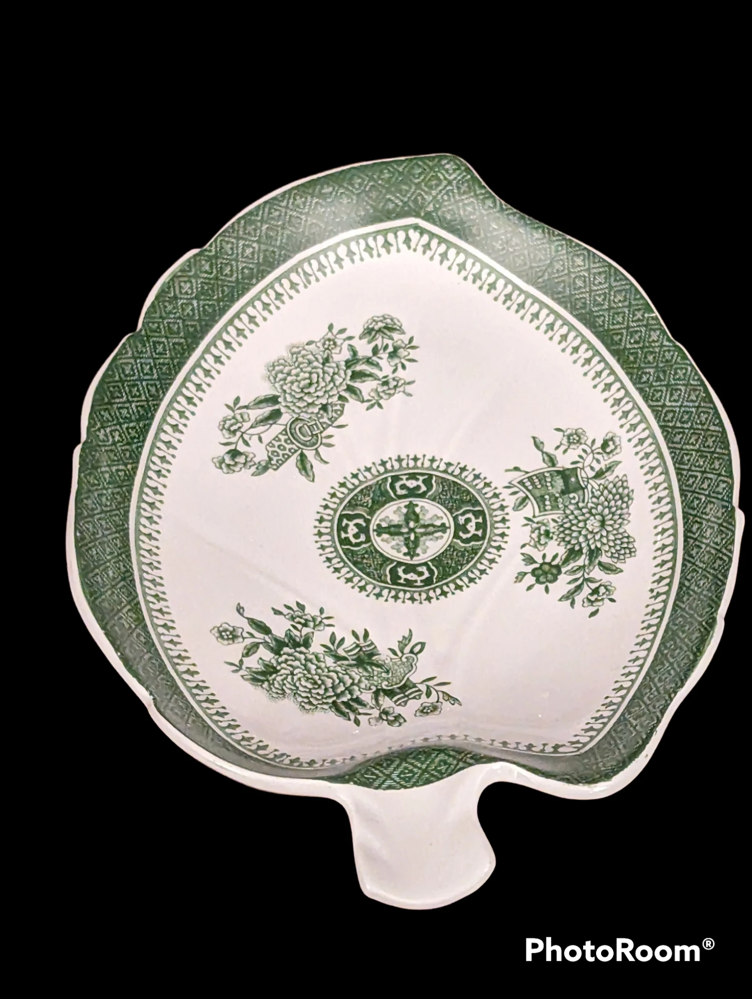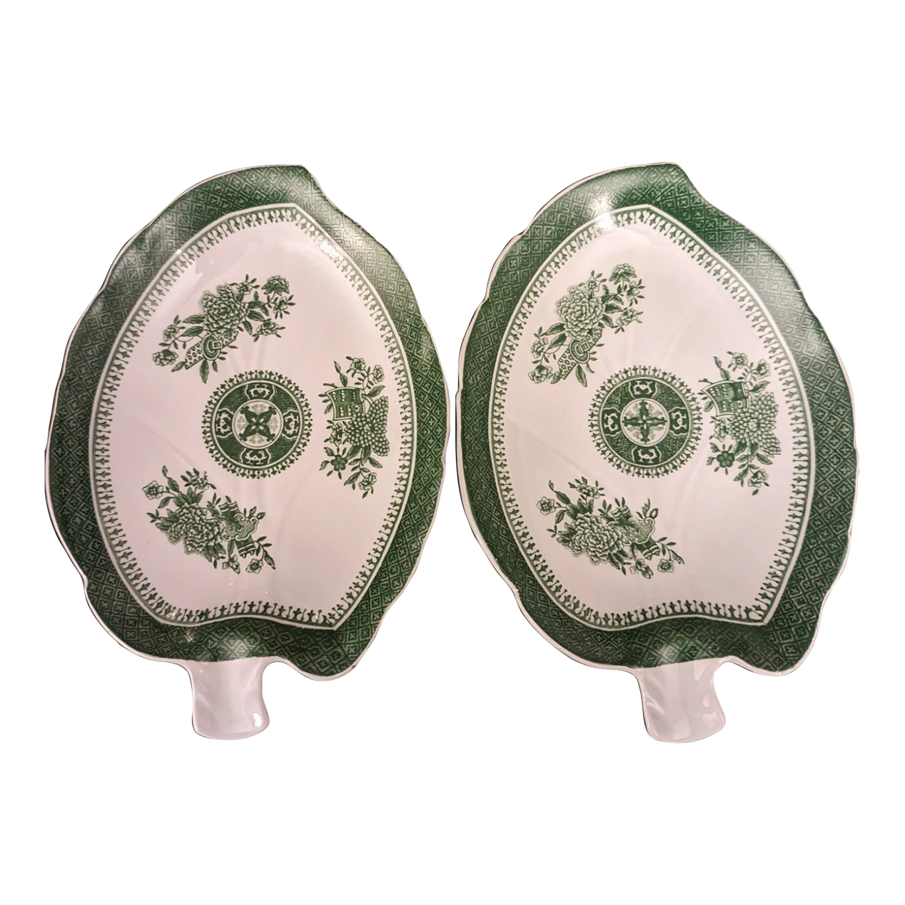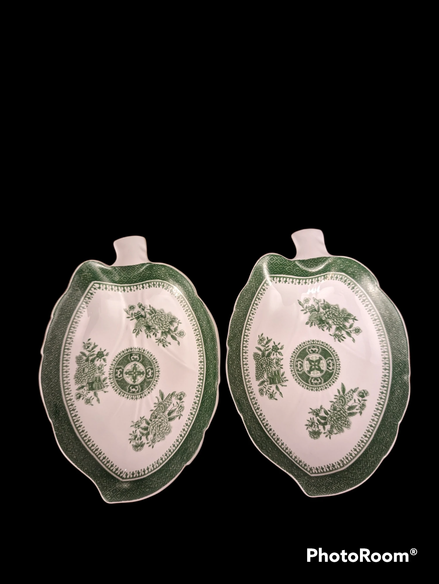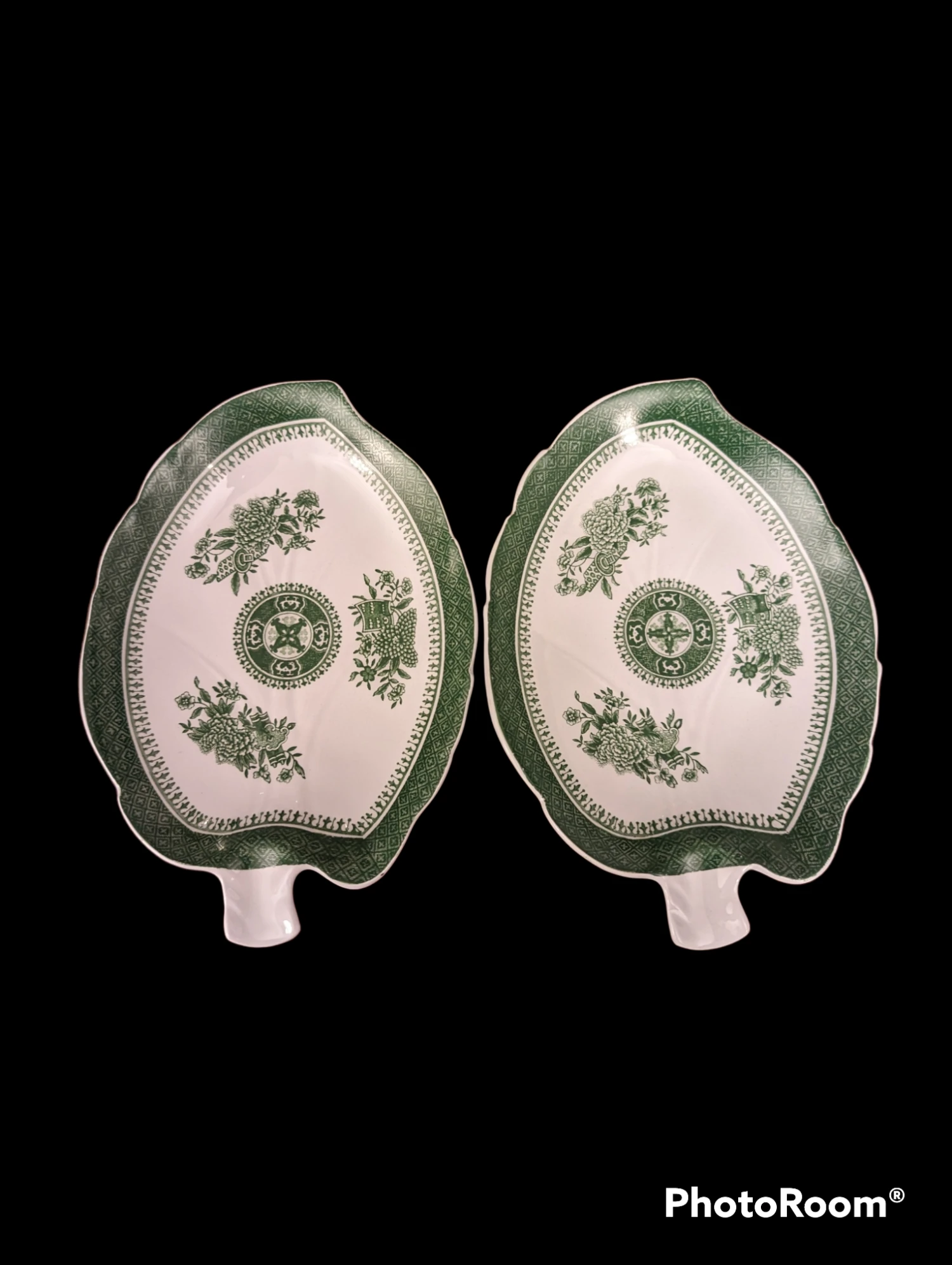 This pair of Spode Fitzhugh Green Leaf Dishes are the perfect way to present little treats and delicacies. 5″W X 7″L X 1″H.