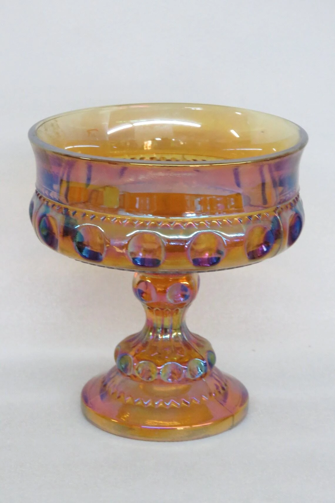 This gorgeous Candy Dish / Compote is made of carnival glass. This adorable Compote is made in the fabulous Kings …