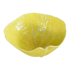 Round Hollywood Regency glazed lettuceware serving bowl in yellow by Secla. Lettuceware or cabbageware was first made popular by Dodie …