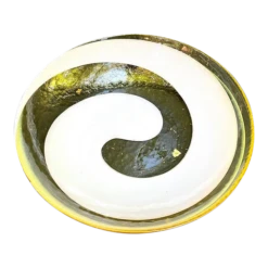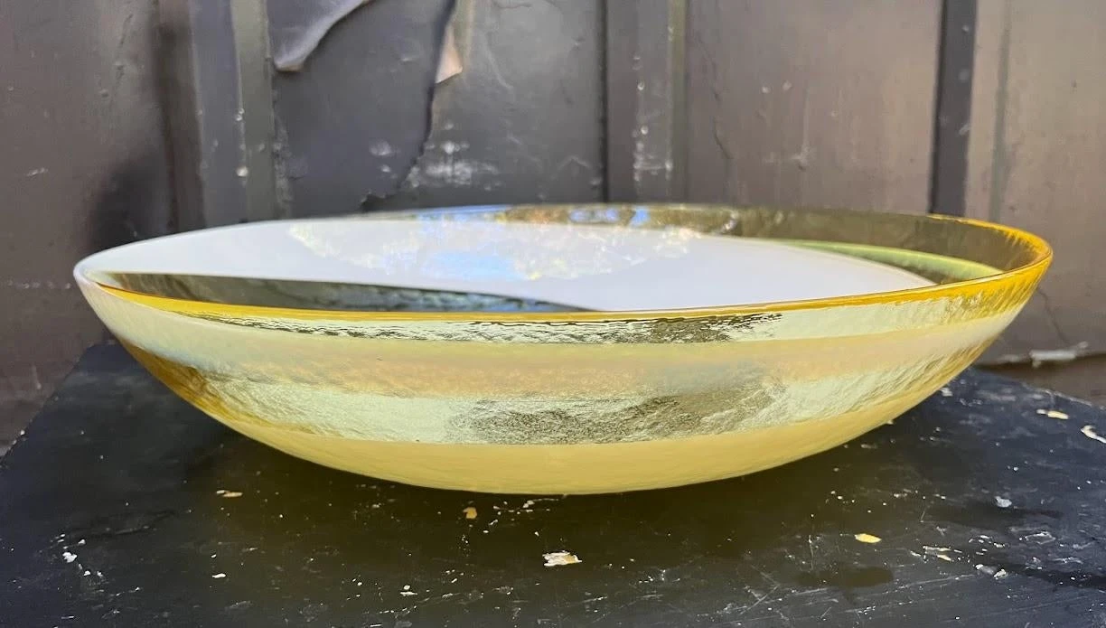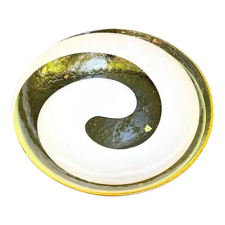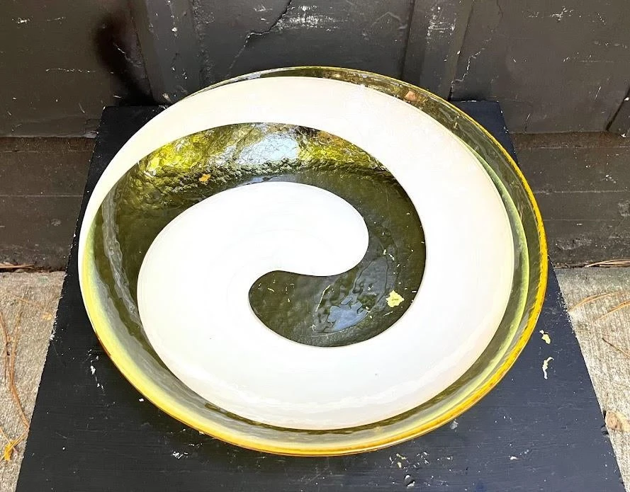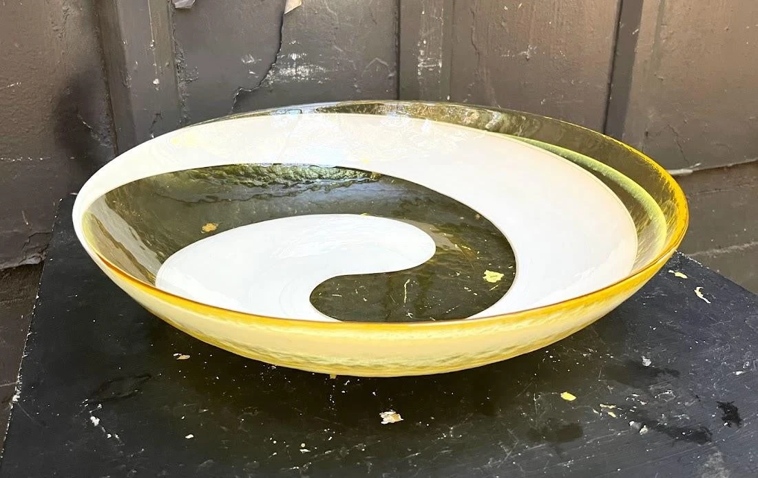 Vintage 1960s-70s gigantic yellow/white swirl art glass fruit/serving bowl. Excellent condition.