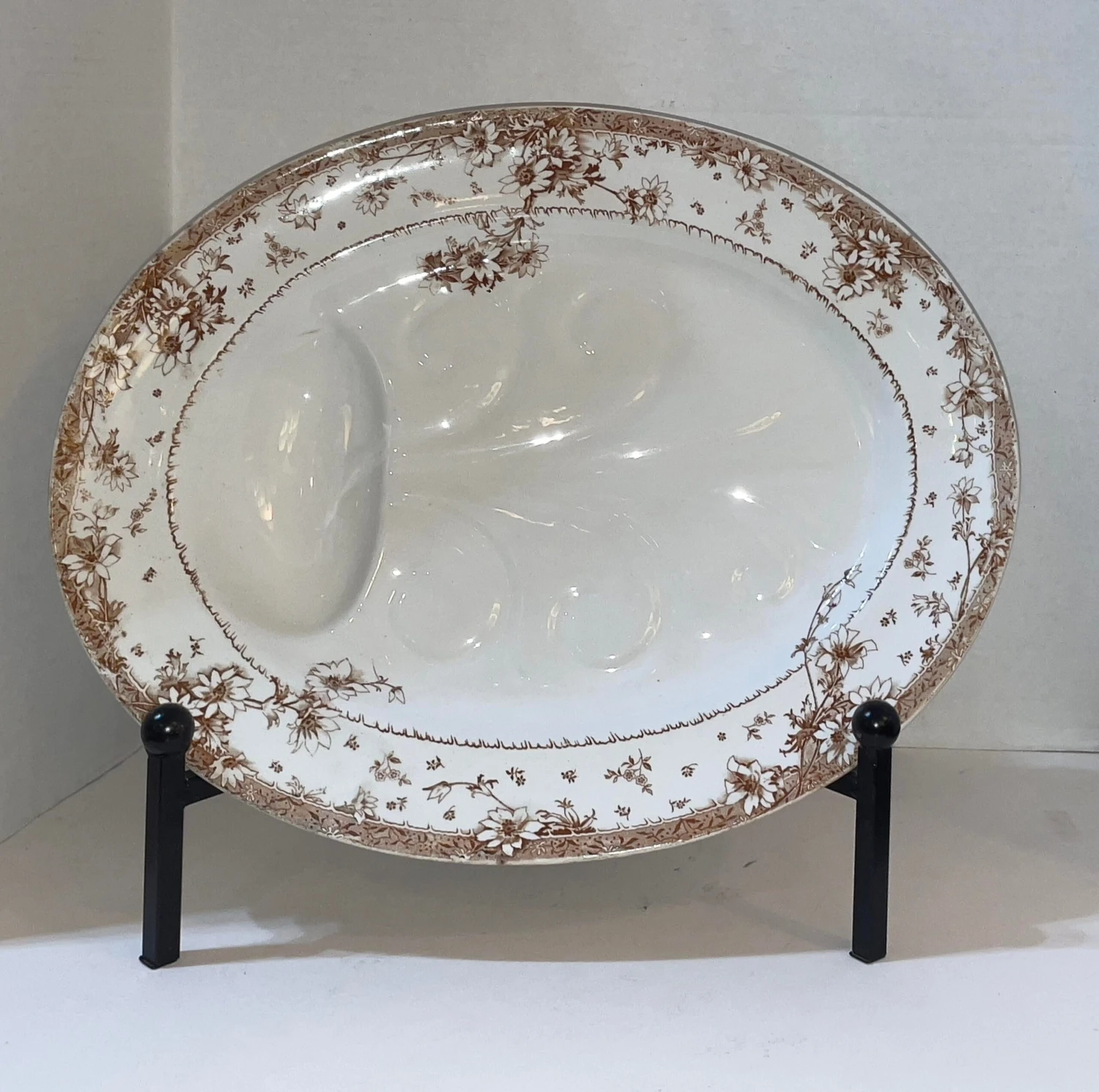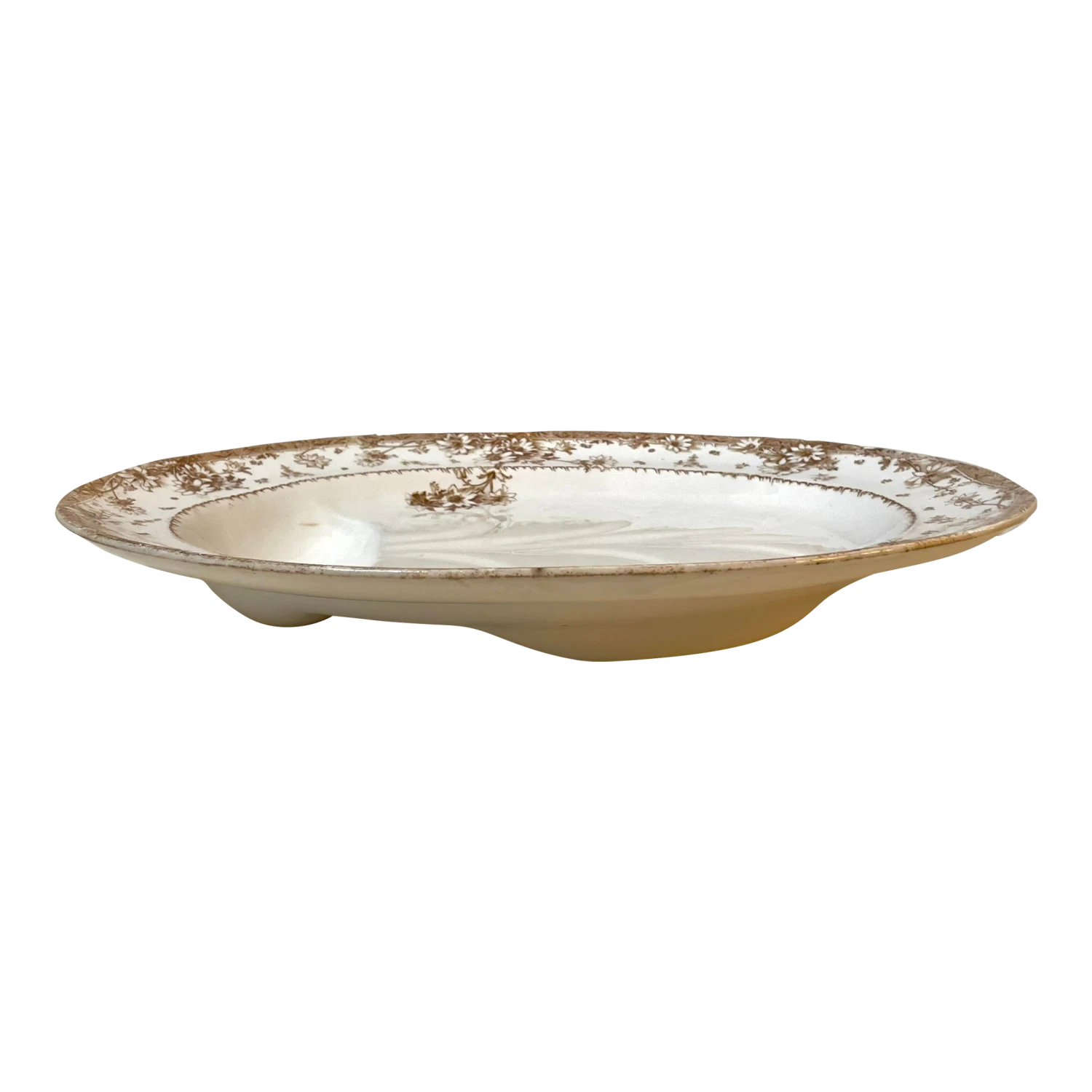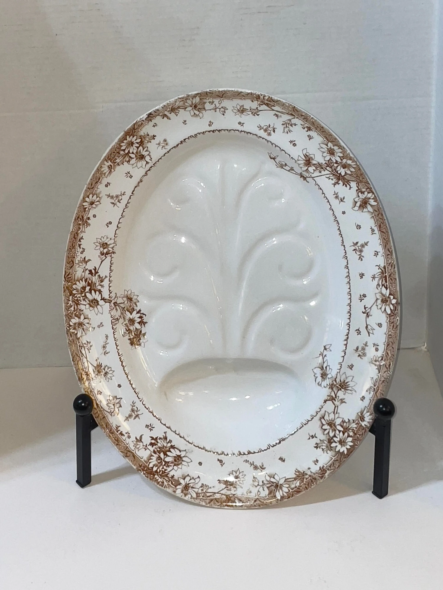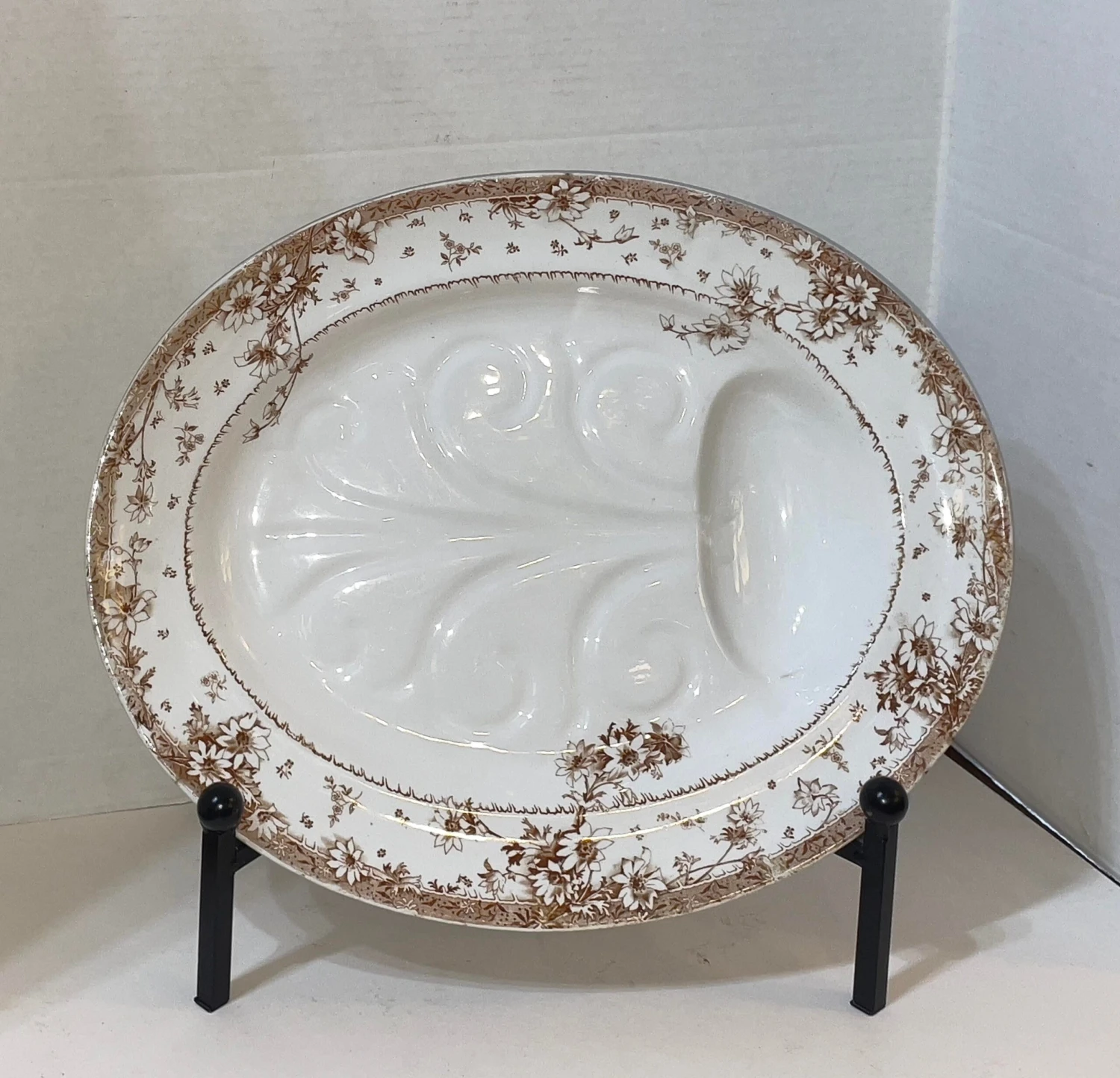 Antique Royal Doulton Tree & Well. The brown white transfer-ware meat dish dates to 1882-1901, the Aesthetic Movement.