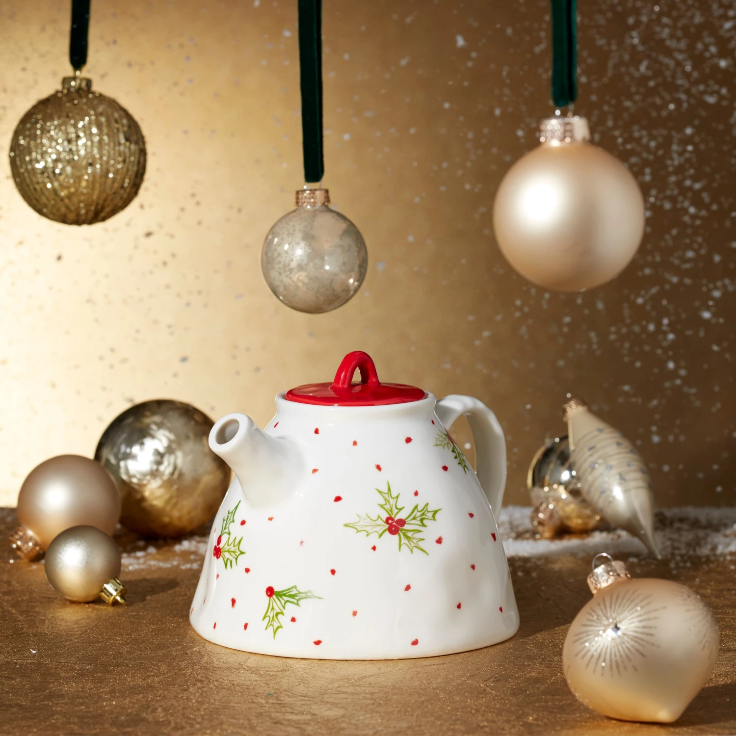 Cute to display…even better to enjoy! Detailed with a hand-sketched holly motif and topped with a wooden lid, our too-cute teapot adds a touch of whimsy to teatime.