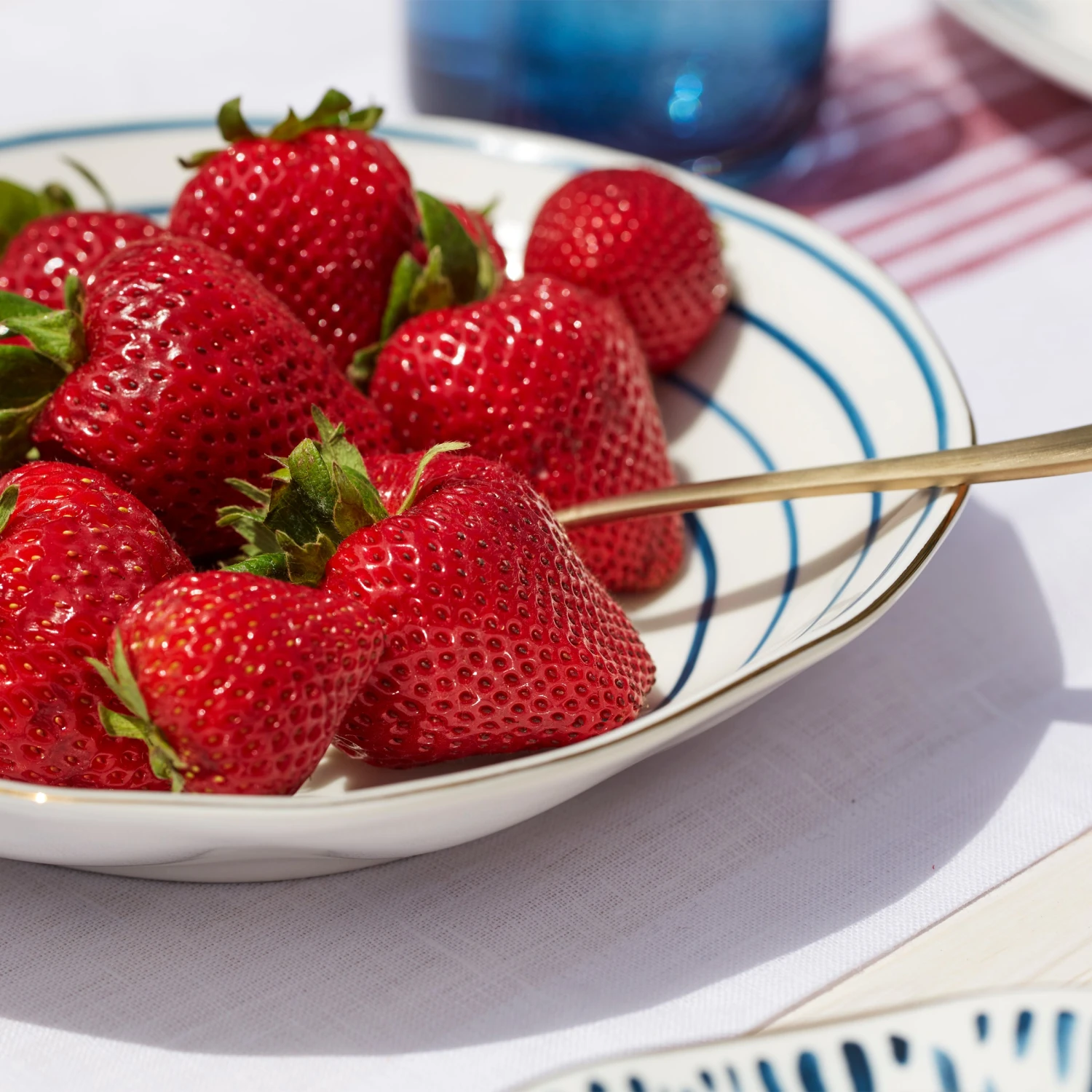 Serve anything from pasta to salad on our Blue Bay pasta bowls. Featuring textile-inspired patterns with delicate gold banding, these bowls are fun yet casual, making them ideal for any setting.