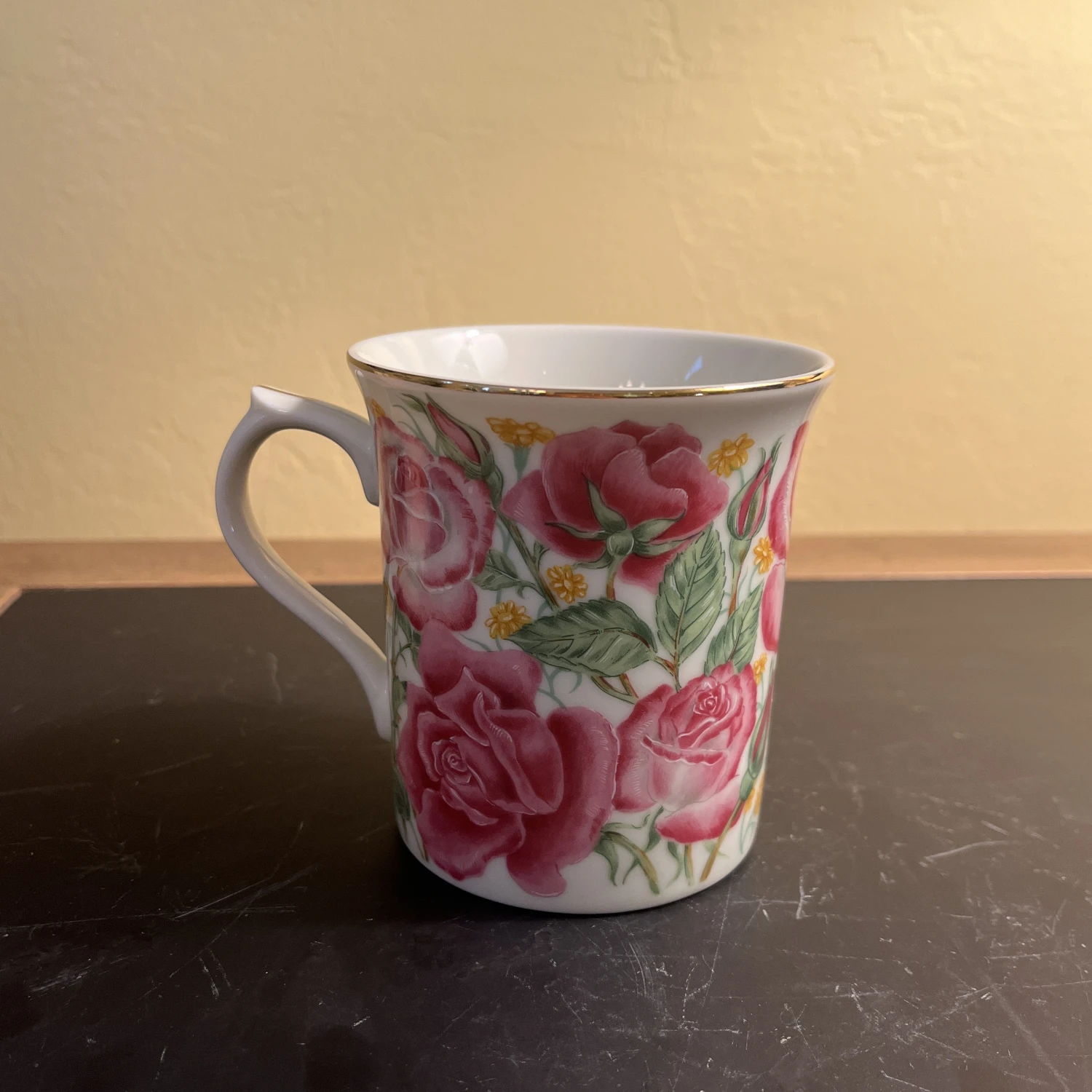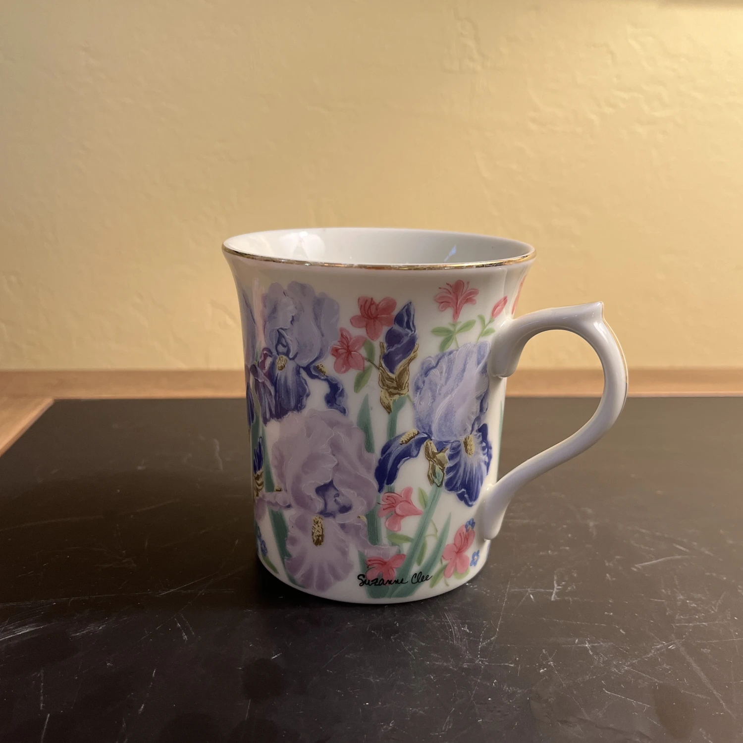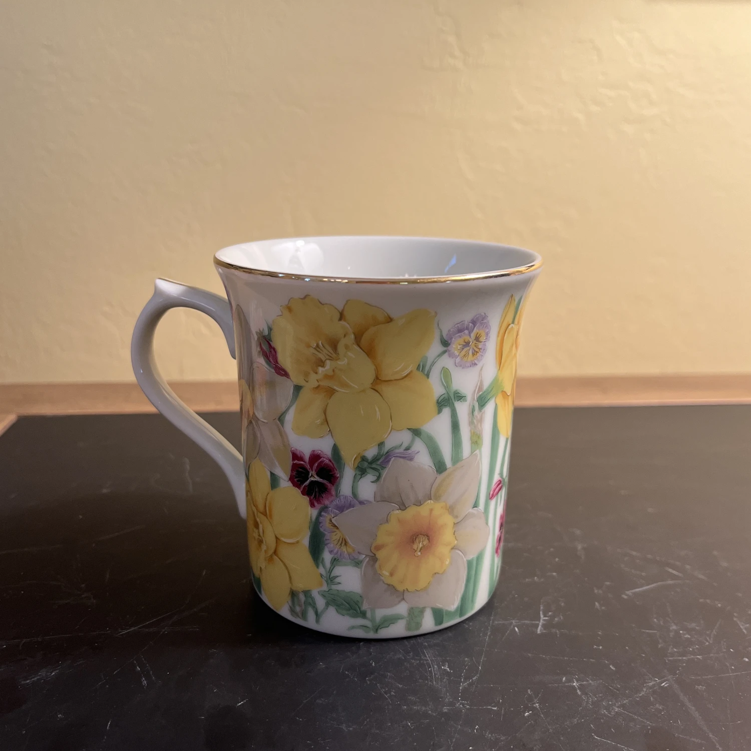 Lenox bone china mugs “The Flower Blossom Mug Collection” by Susanne Clee. Includes the four mugs “Daffodil”, “Day Lily”, “Iris”, and “Rose”. Each mug has a height of 3.625” and a width of 4.5”. Used, but in very good condition.