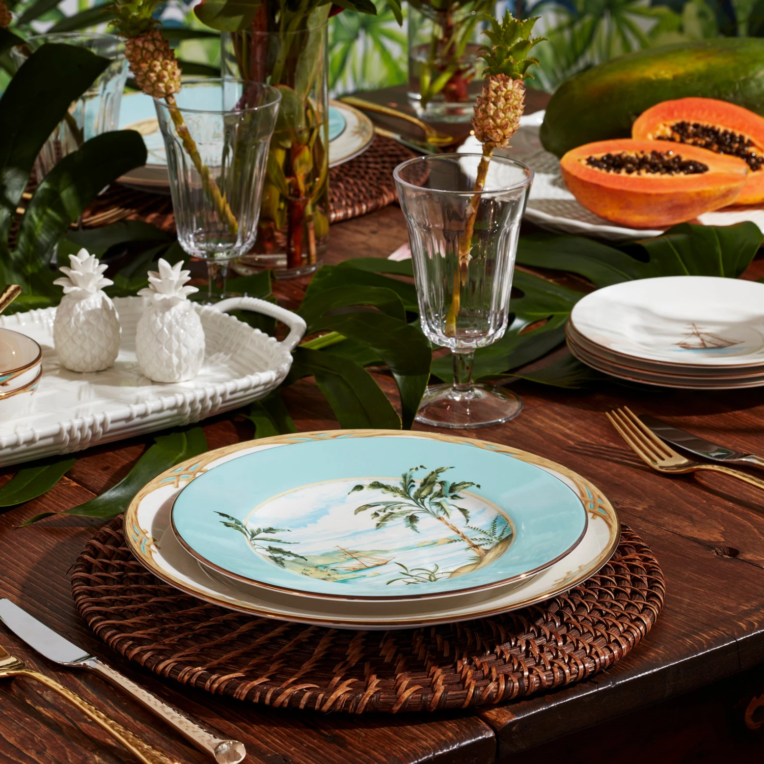 Crafted from durable porcelain, this accent plate is microwave and dishwasher-safe, for added convenience. The British Colonial Tradewind 9″ Accent Plate is crafted with innovative microwave-safe gold, and combines classic Lenox craftsmanship with the exotic lushness of the tropics.