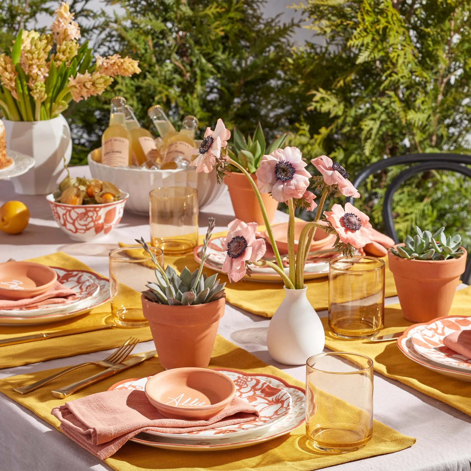 These lovely and lively pieces feature flourishing natural motifs and a cottagecore aesthetic. Designed with a bold, bright goldenrod hue and grandmillenial floral accents from edge to edge. Add some warmth to your home with these charming four accent plates!