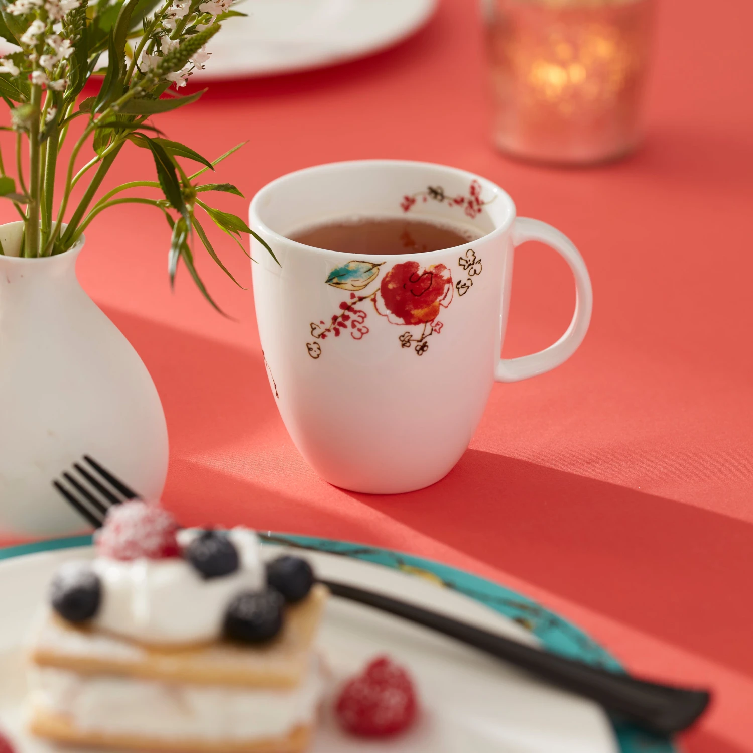 Perfect for your dining table or the picnic table. This tea/coffee cup serves as the canvas for an enchanting watercolor scene of flowering branches and birds. It’s crafted of durable porcelain, and is ideal for everyday use.