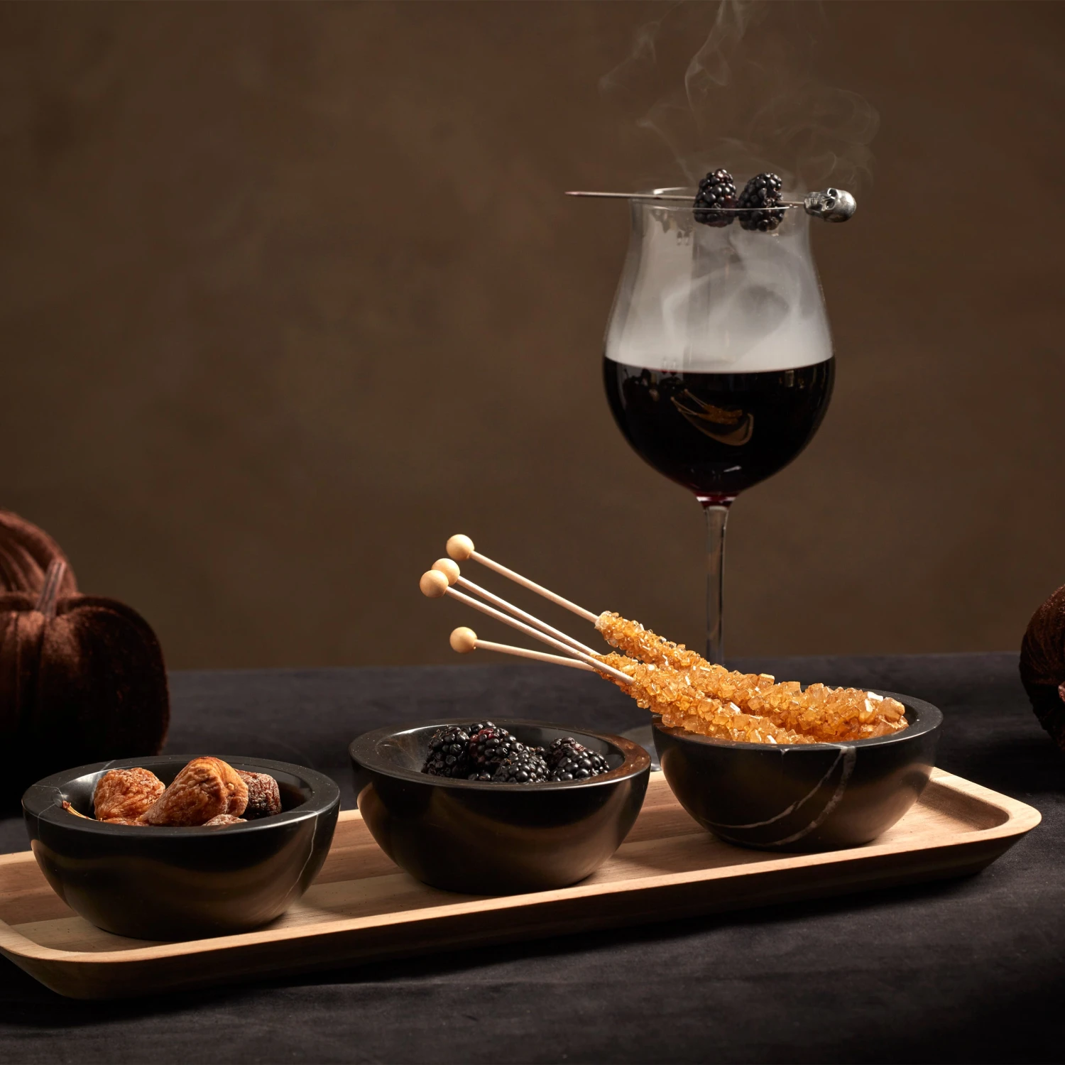 Simple meets sublime in these LX Collective dip bowls and serving tray. Juxtaposing modern marble bowls with an earthier wooden tray, the set comes together with a timeless appeal you’ll appreciate for all your events.