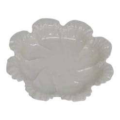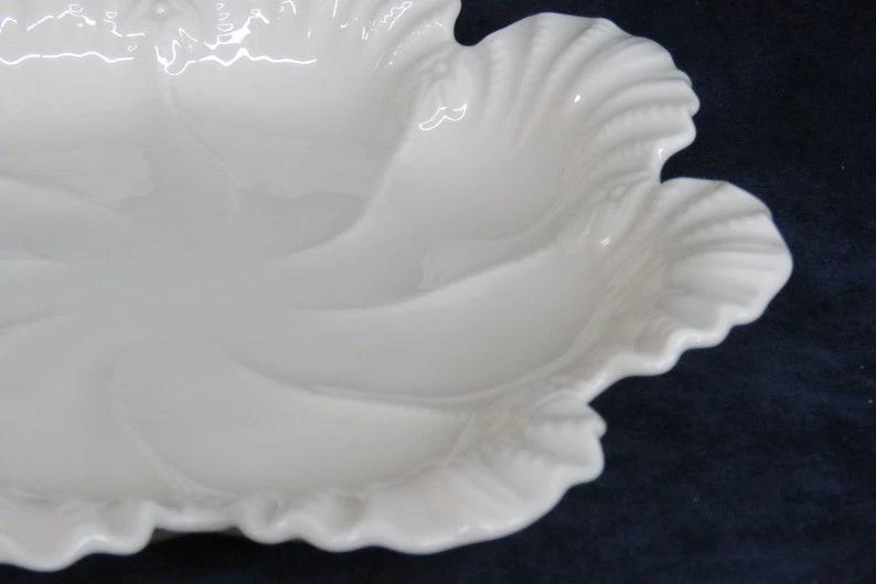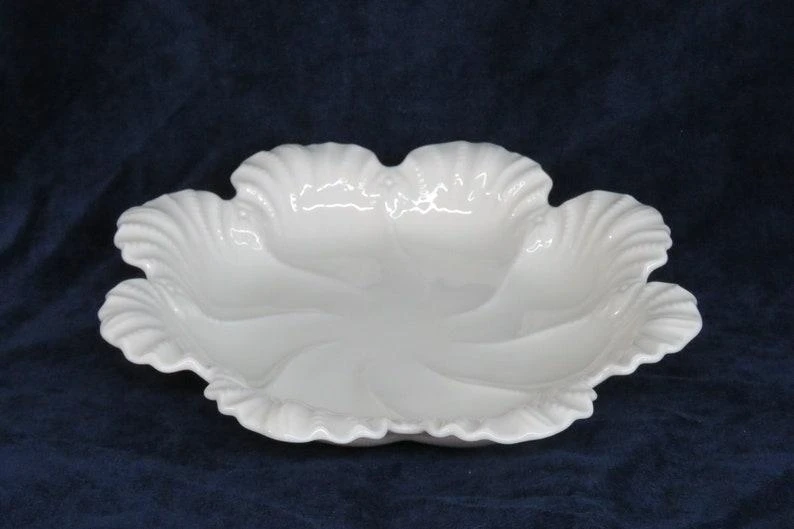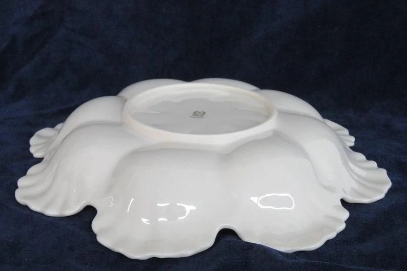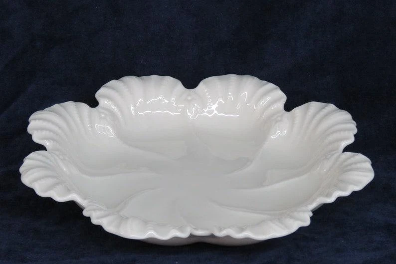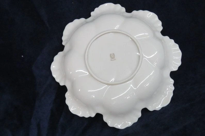 This lovely porcelain bowl is made in the Cabbage Leaf style by Lenox, and is stamped as being made in the USA by Lenox, see pictures. This pretty bowl has a great ivory cream color to the porcelain and overall wonderful floral style. Please see photos for size/scale, the height is approximately 1 1/2″ and the diameter is approximately 10 1/4″.
