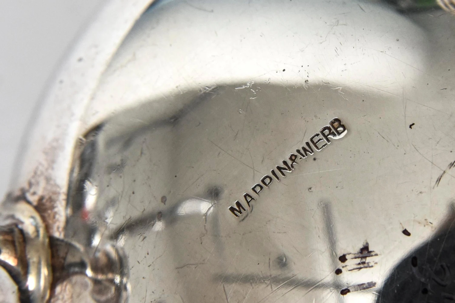 This beautiful ornate example of a mustard pot by famed Birmingham England silversmith Mappin and Webb was manufactured in 1929. …