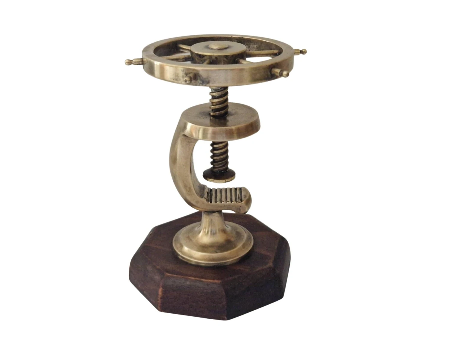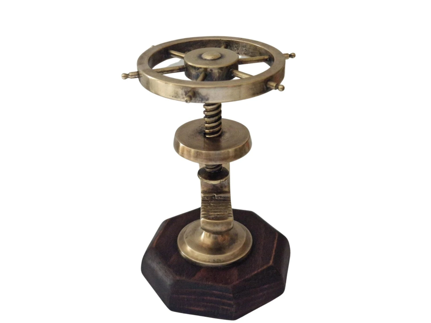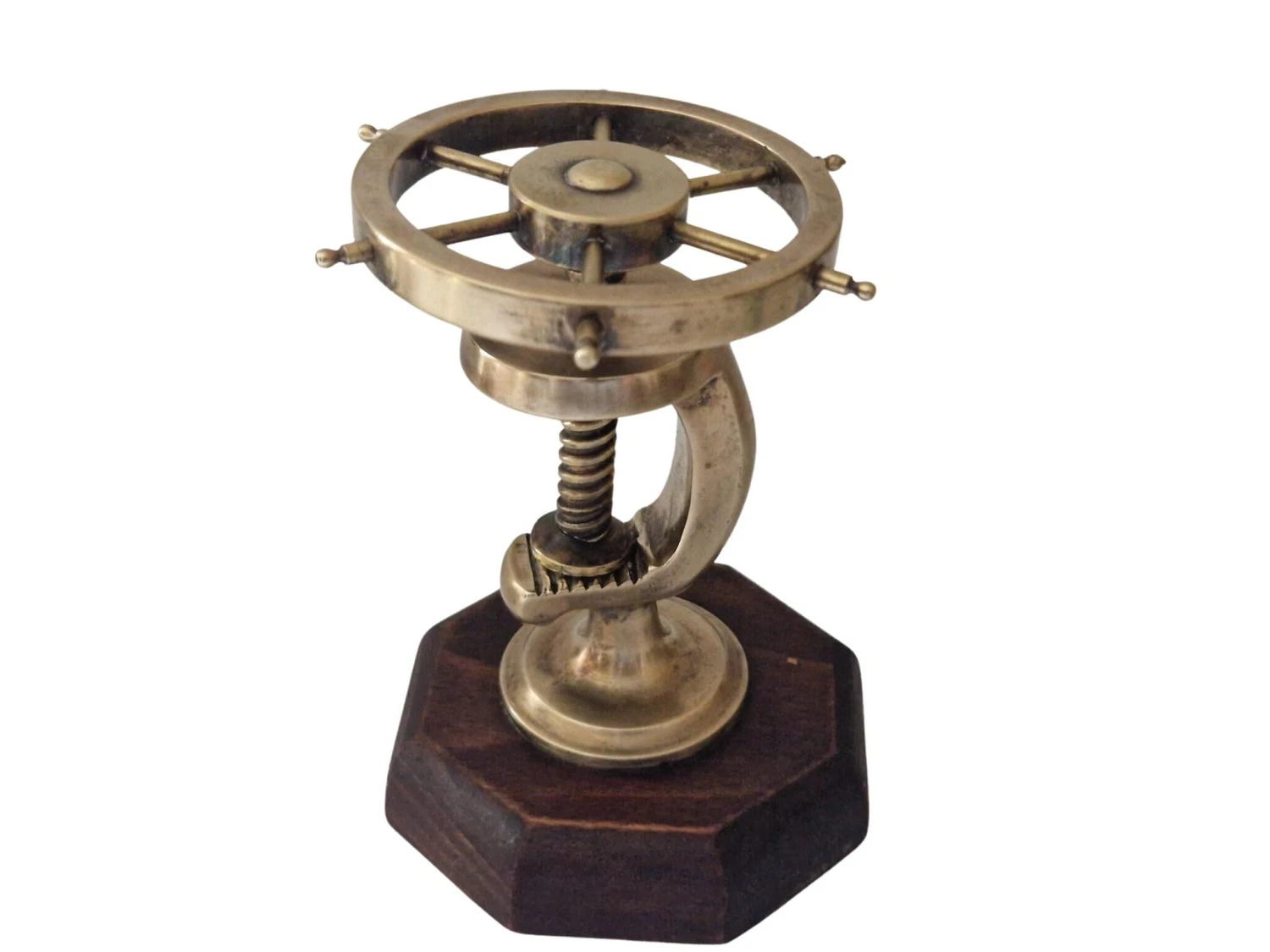 A brass nutcracker created in the form of a traditional ship’s wheel dating from the 1960s. It has been cast …