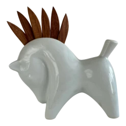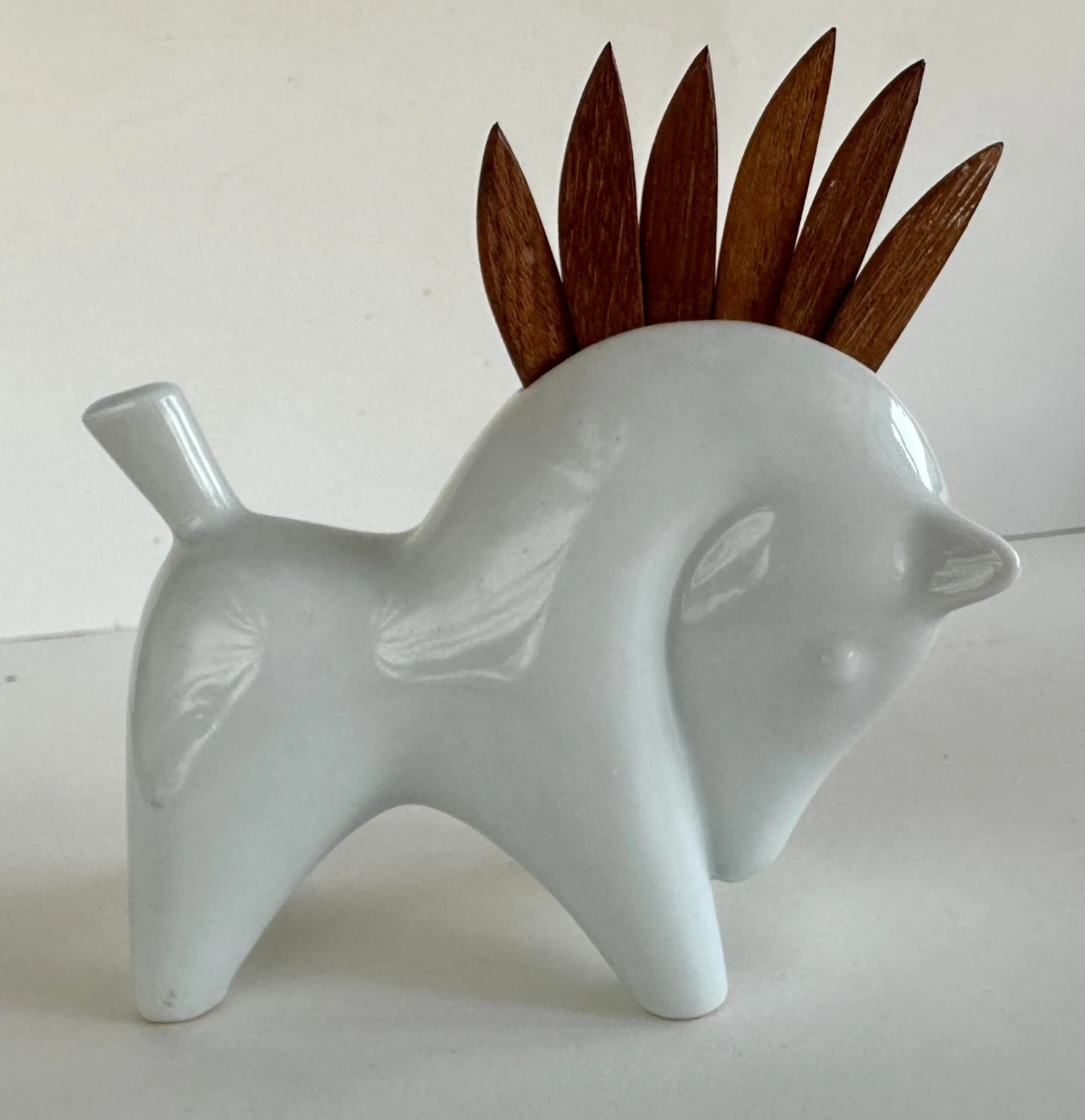 Vintage mid-century figural hors d’oeuvres or cocktail pick holder with the iconic form of a charging horse. From the Otagiri …