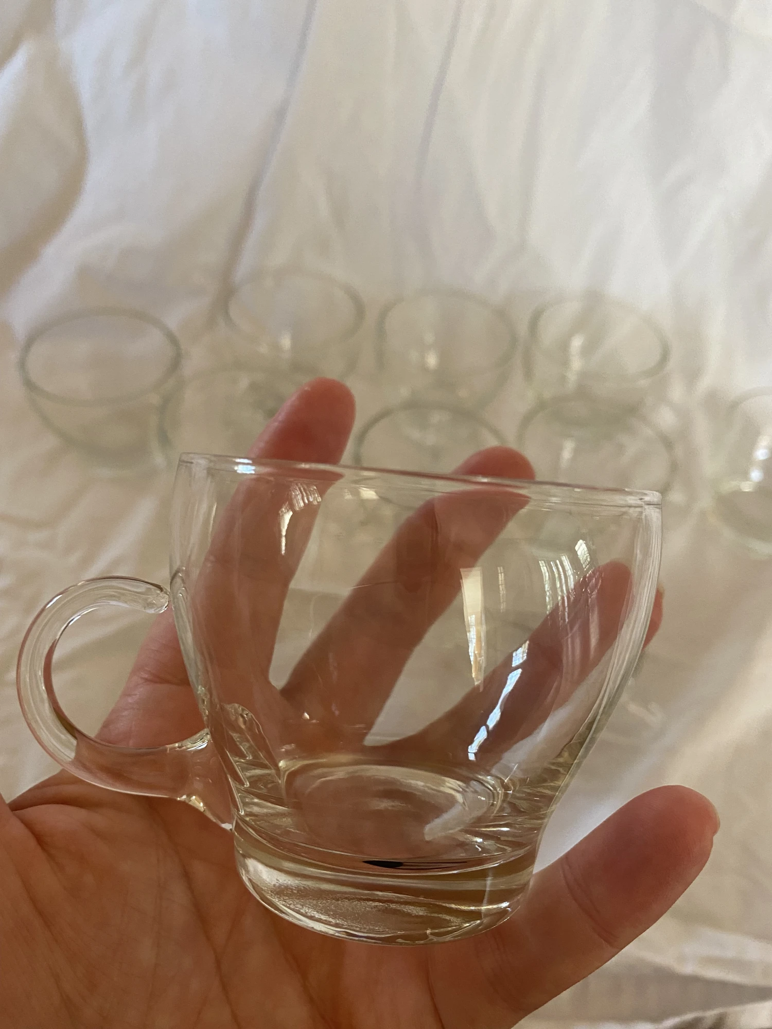 Set of 10 demitasse glass mugs. Feature a snake like curving handle. Very delicate and mid century. Great for espresso …