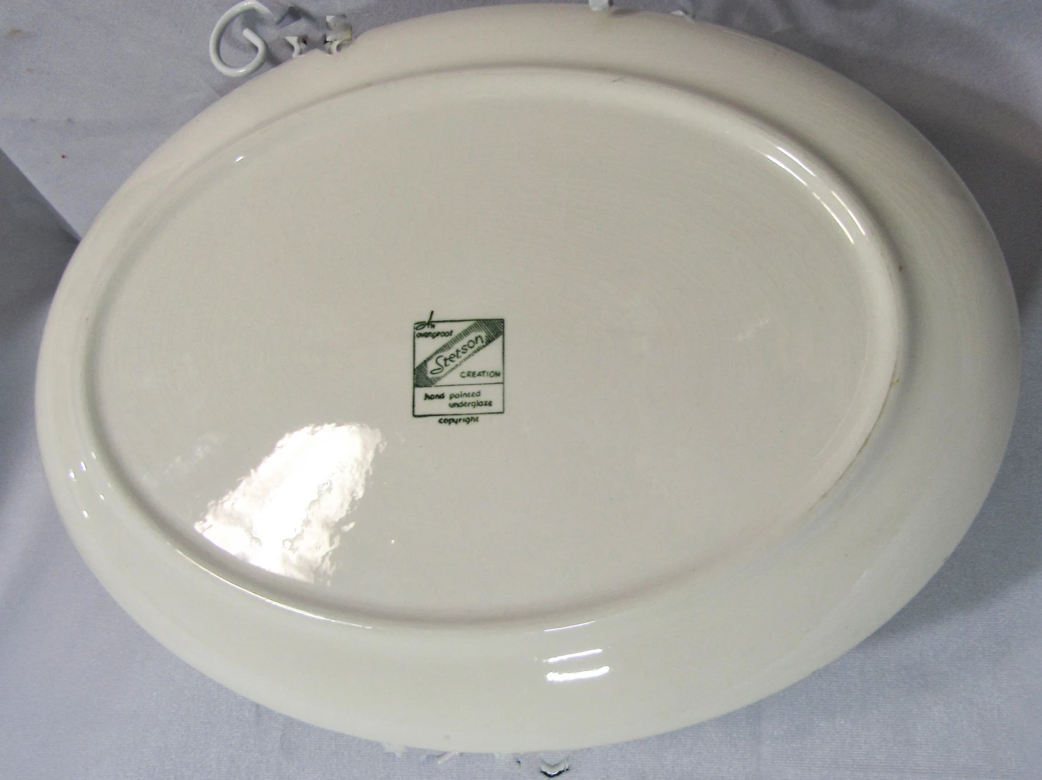 Lovely old mid century food platter, 14″ long, oven proof, hand painted under glaze. No cracks or chips. Very pretty. …