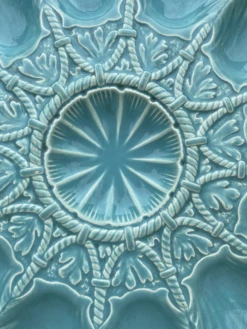 19th Century Majolica Aqua Shell Oyster Platter Sarreguemines