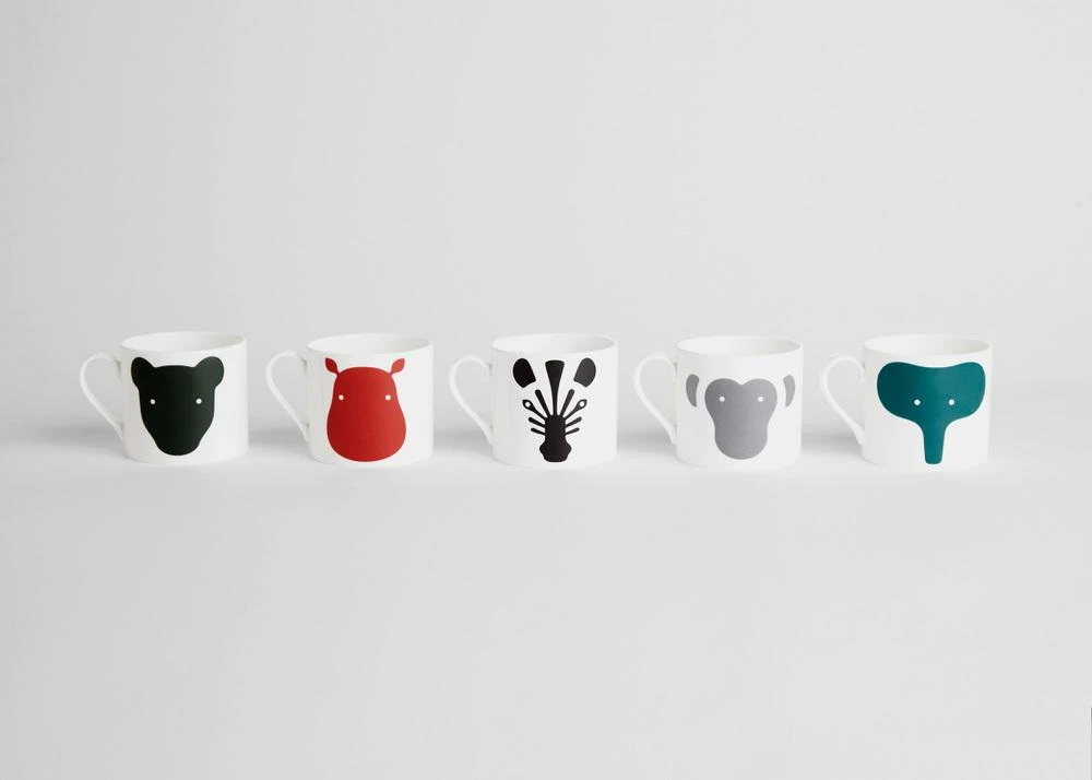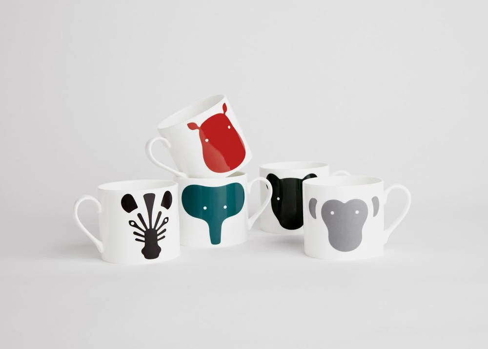 The Animal Mug, for kids, is a bright, clear and modern range of the five animals: Hippo, Puma, Elephant, Monkey and Zebra.