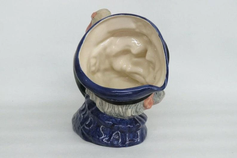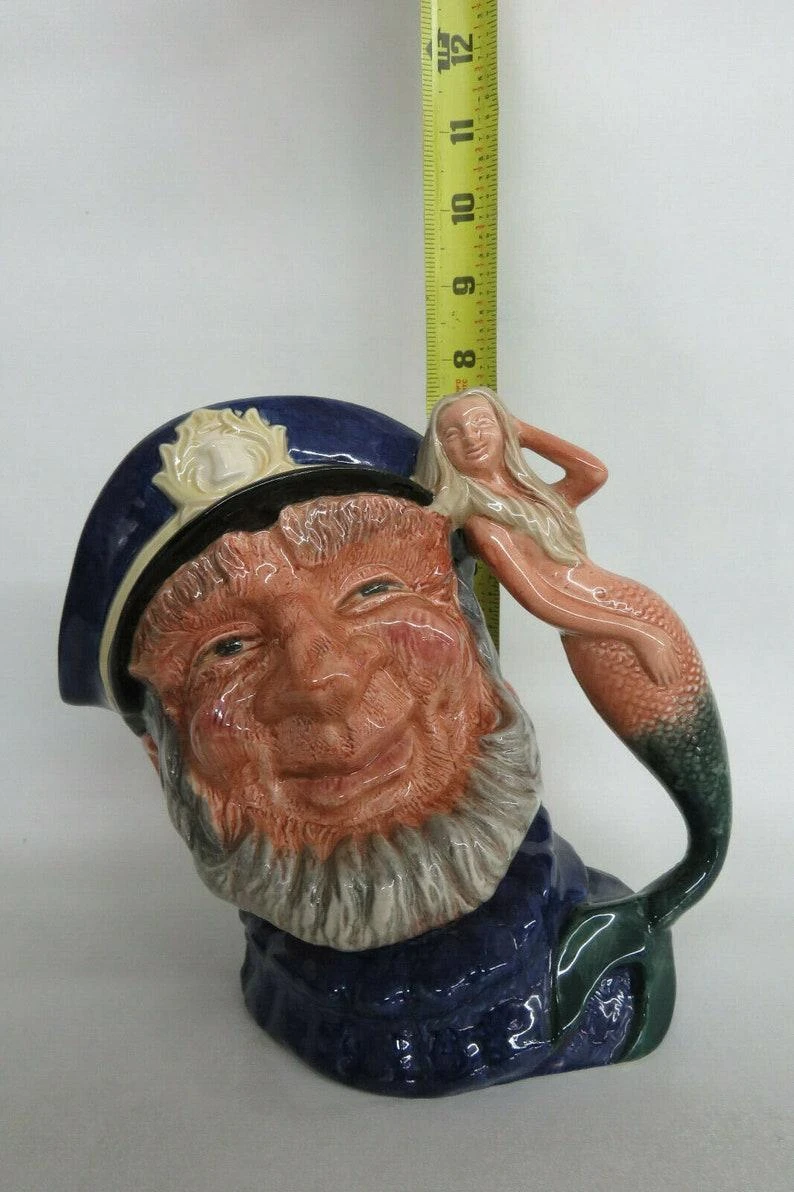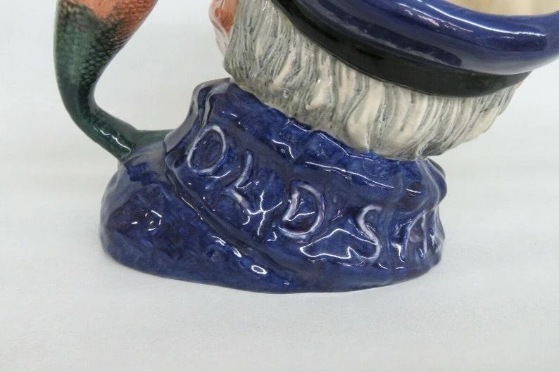 This gorgeous large character mug is made of porcelain. This lovely character jug is stamped as being hand made in England by Royal Doulton, the fine ceramics and collectibles company, see pictures. This piece is titled ” Old Salt ” with a style number of D6551 and is a beautifully sculpted and painted depiction of an interesting old sea captain, with a beautiful mermaid serving as the handle for the mug. Please see photos for size/scale, the height is approximately 7 1/2″ and the width is approximately 7″.