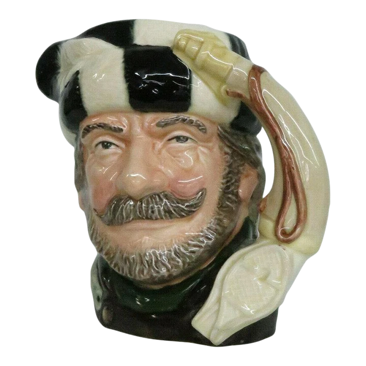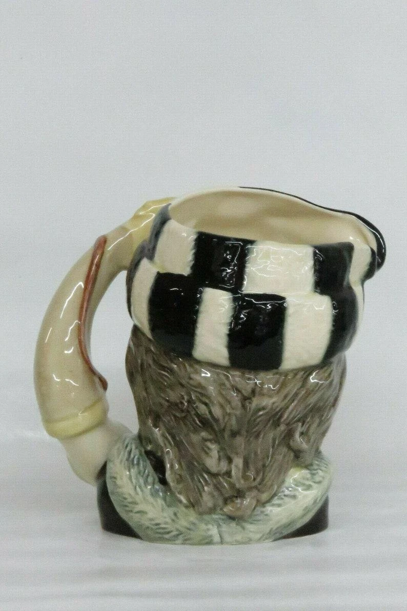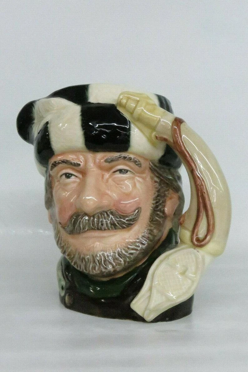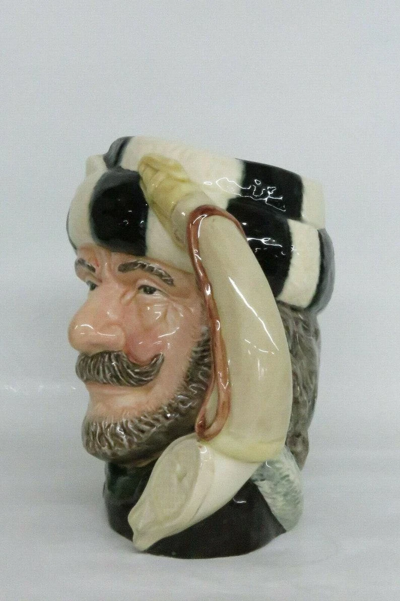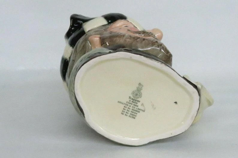 This brilliant large character mug is made of porcelain. This beautiful collectible mug is stamped on the bottom as being made in England by Royal Doulton, the fine china company, see pictures. This piece is titled ” Trapper ” with a style number of D6609 and is a wonderfully sculpted and painted character mug. Please see photos for size/scale, the height is approximately 7″.