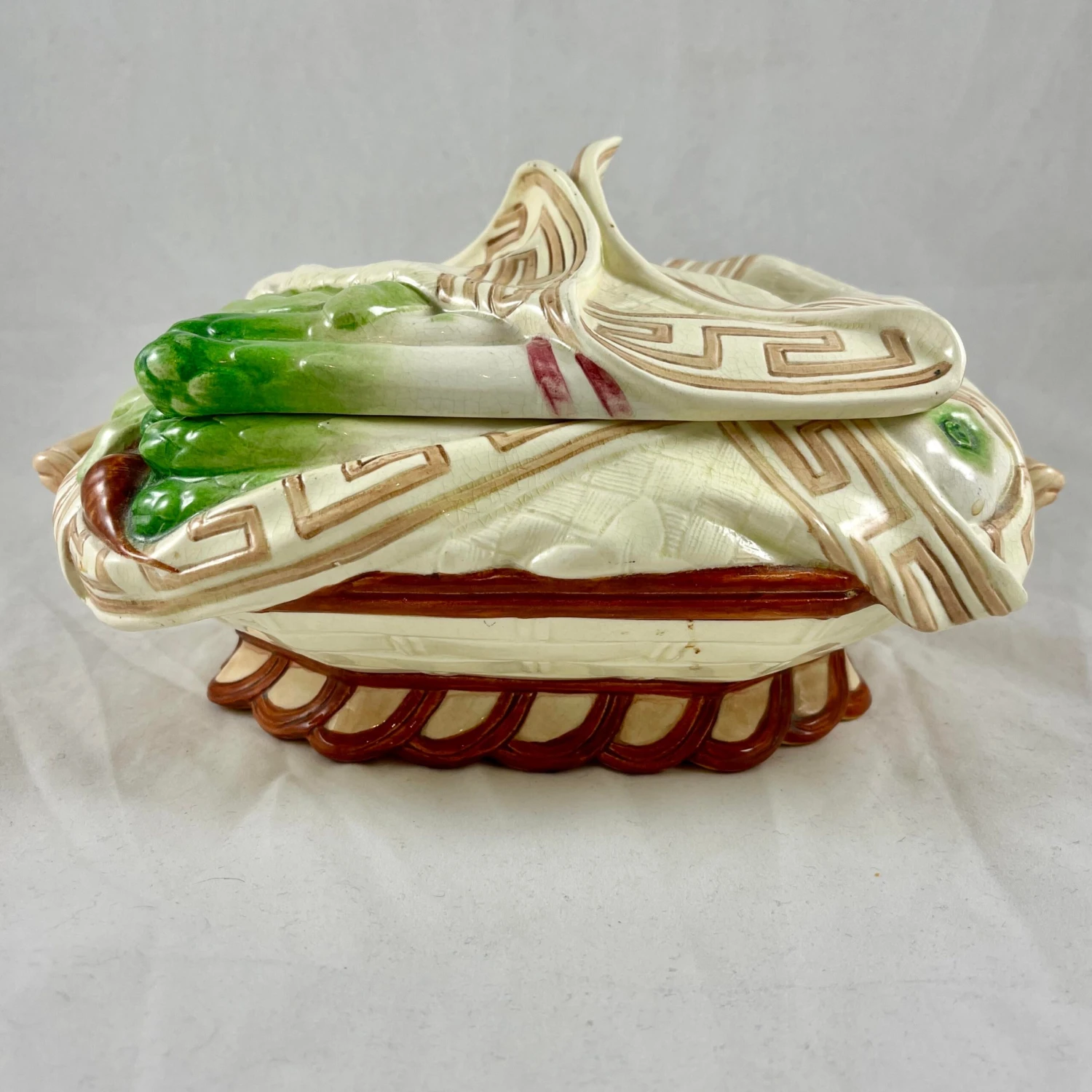 From Sarreguemines, France, a very scarce majolica glazed covered tureen, circa 1870.