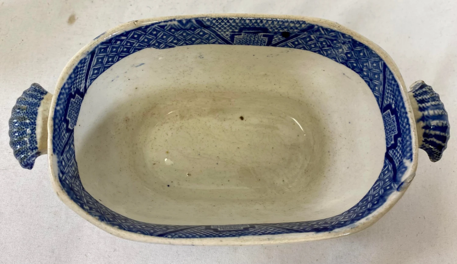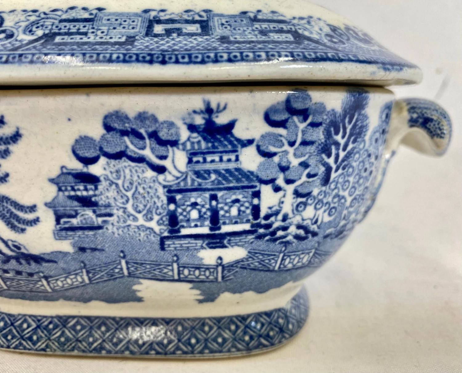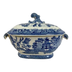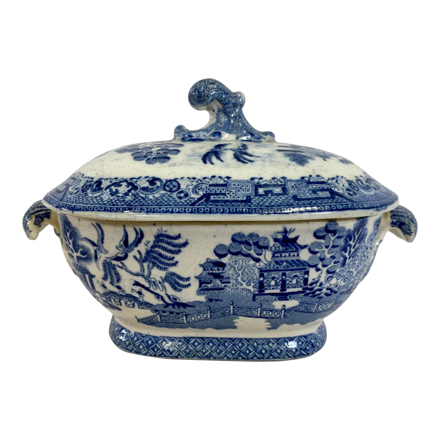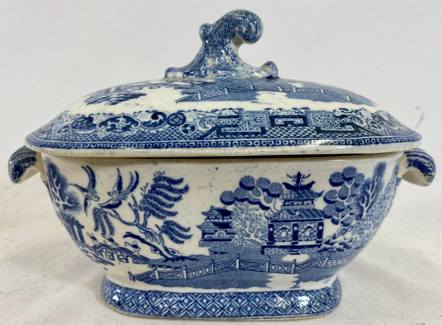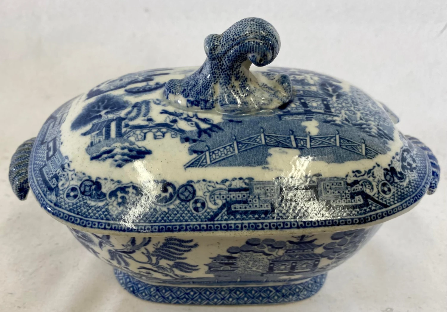 Small Antique Blue Willow Tureen From England – Circa 19th Century.