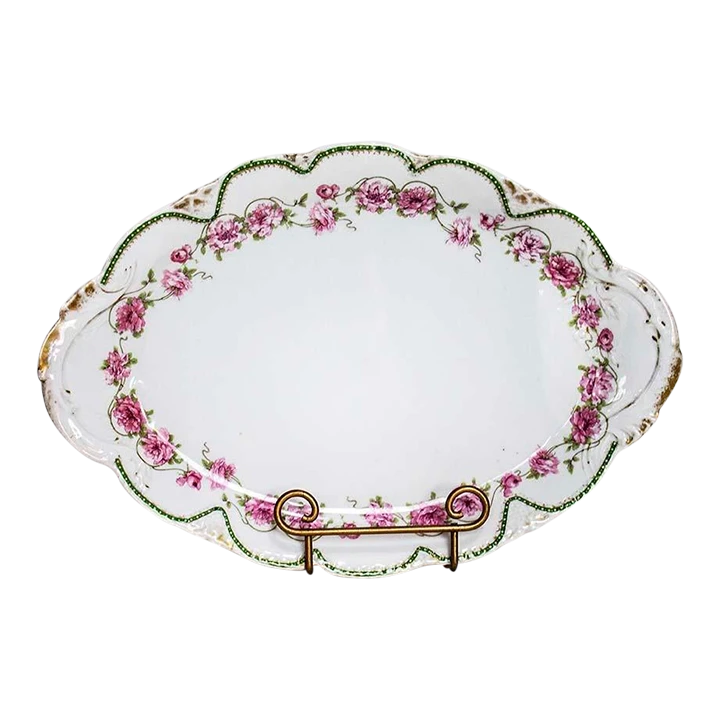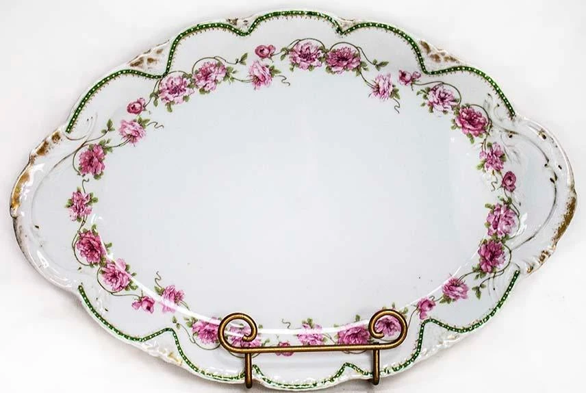 Lovely Haviland Limoges platter as only the French can do it! Classic pink flower border with green accents surround the border on a pure white background.