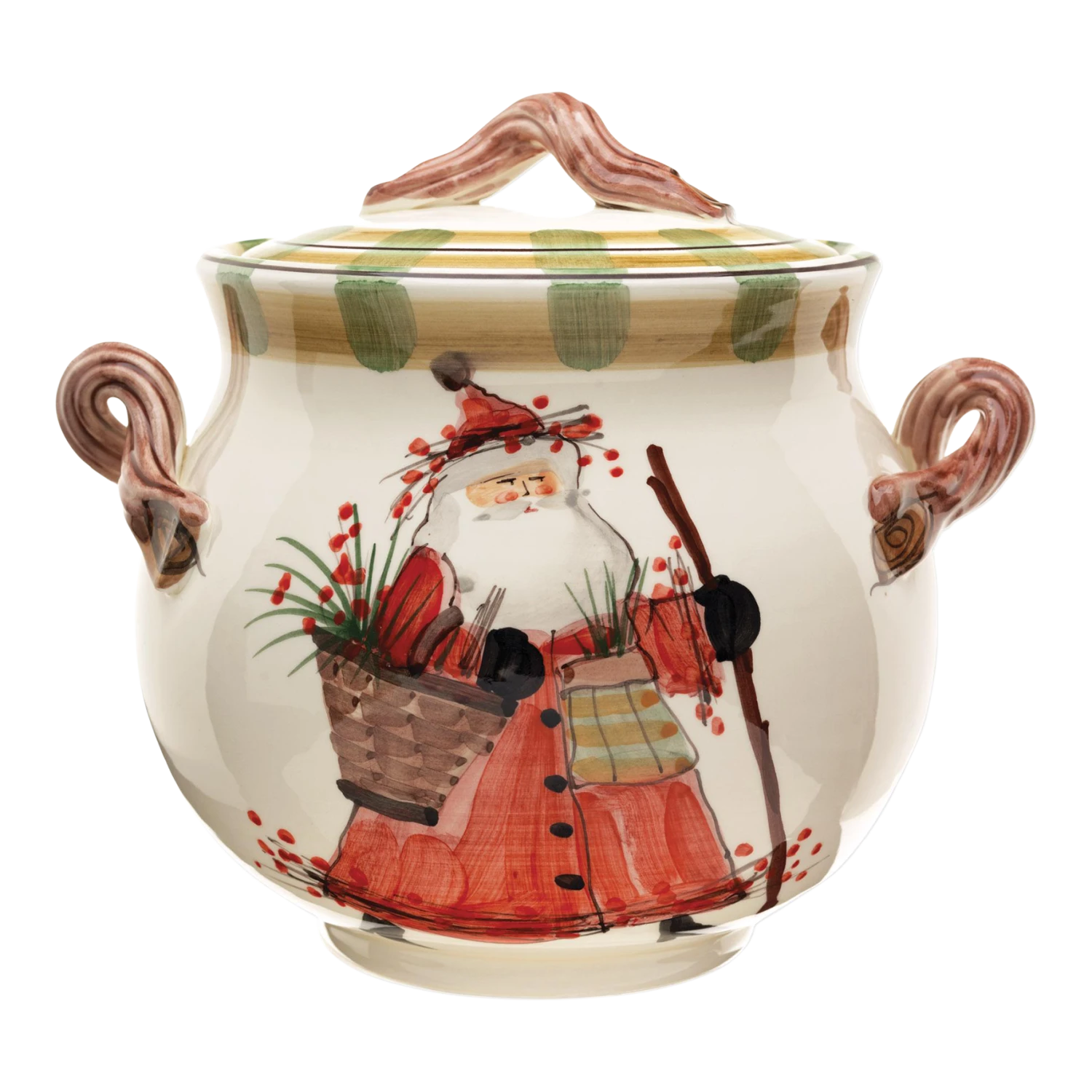 The Old St. Nick Biscotti Jar features the handpainted designs of maestro artisan Alessandro Taddei.