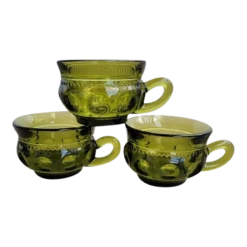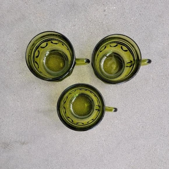 Gorgeous mid-century modern Bartlett Collins glass coffee or teacups. The company started in 1914 in Oklahoma when Bartlett, (an Oklahoma oil man) teamed up with Collins (an East Coast glass man). The company was famous for its hand-pressed and blown tableware, stemware, and kitchenware. Set of 3