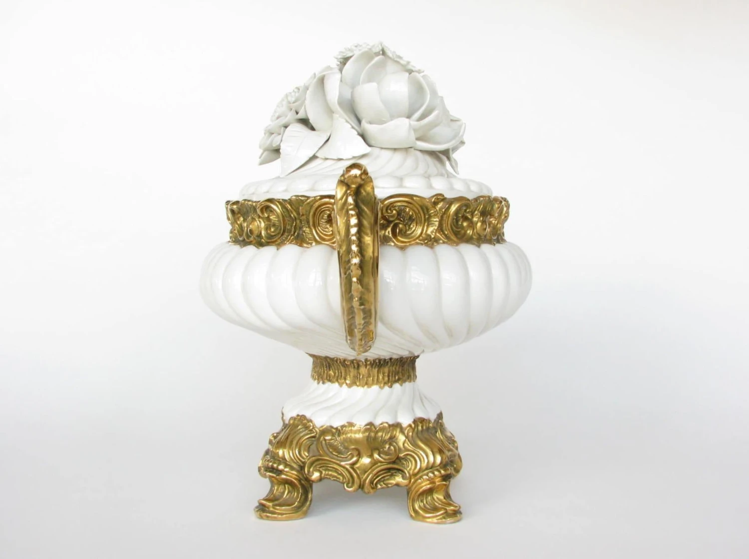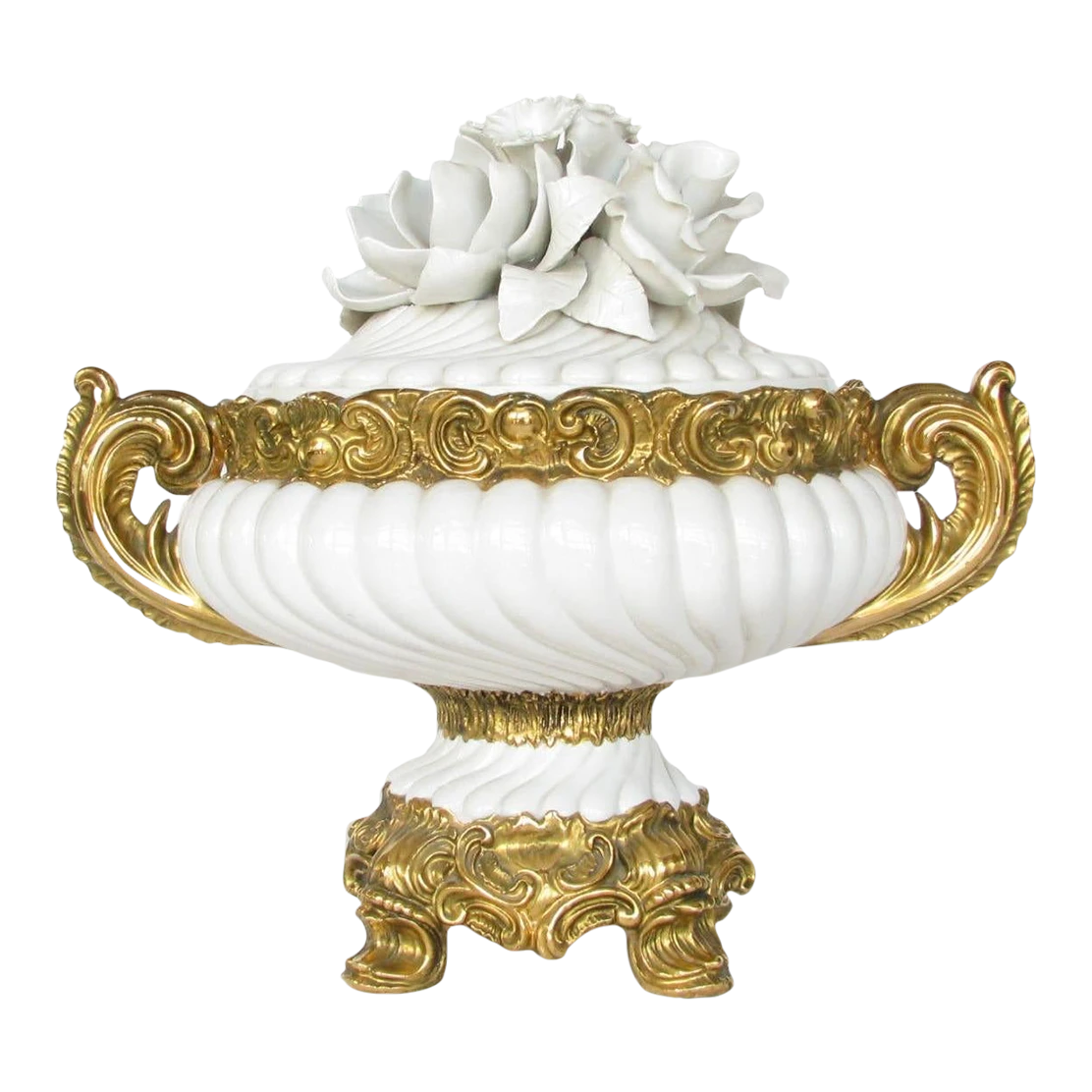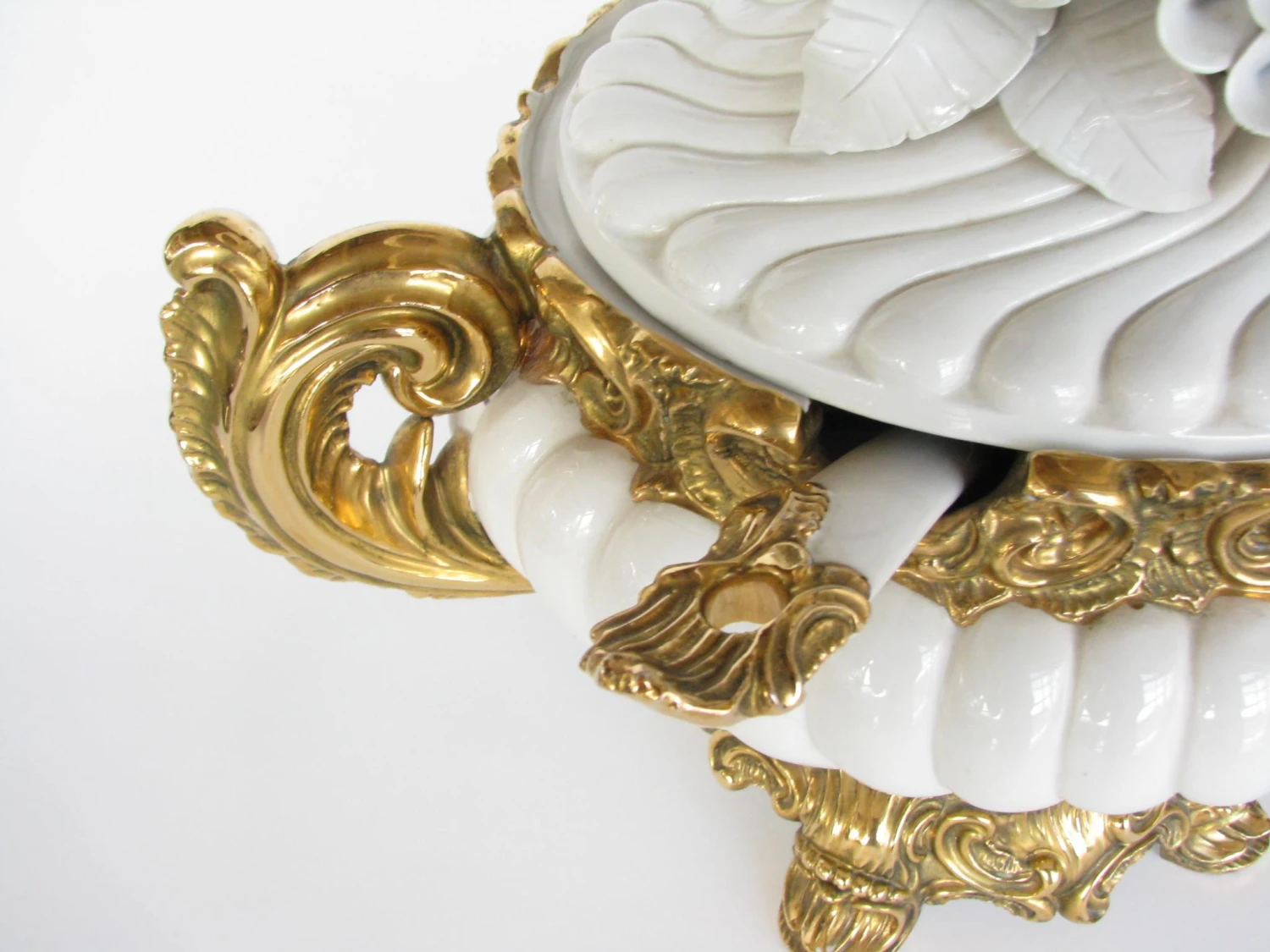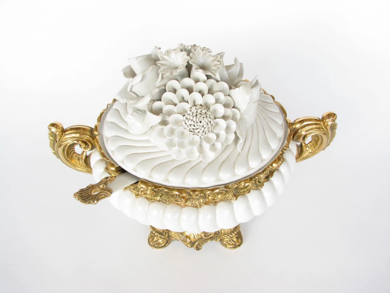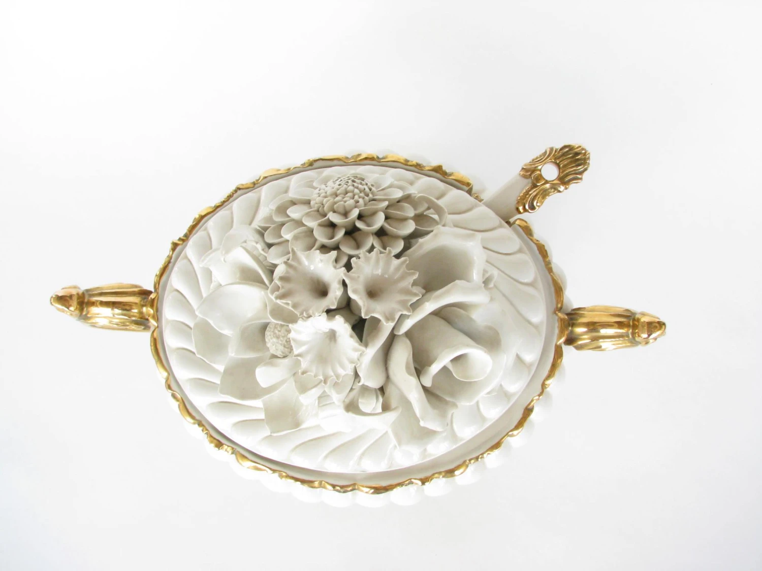 Vintage monumental Capodimonte style ceramic soup tureen with ladle. Fantastic delicate, ornate decoration. Made in Italy.
