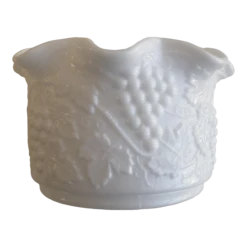 Vintage white milk glass , with grape leaf pattern ruffled edge bowl, can be use for wine bottle holder, makers …