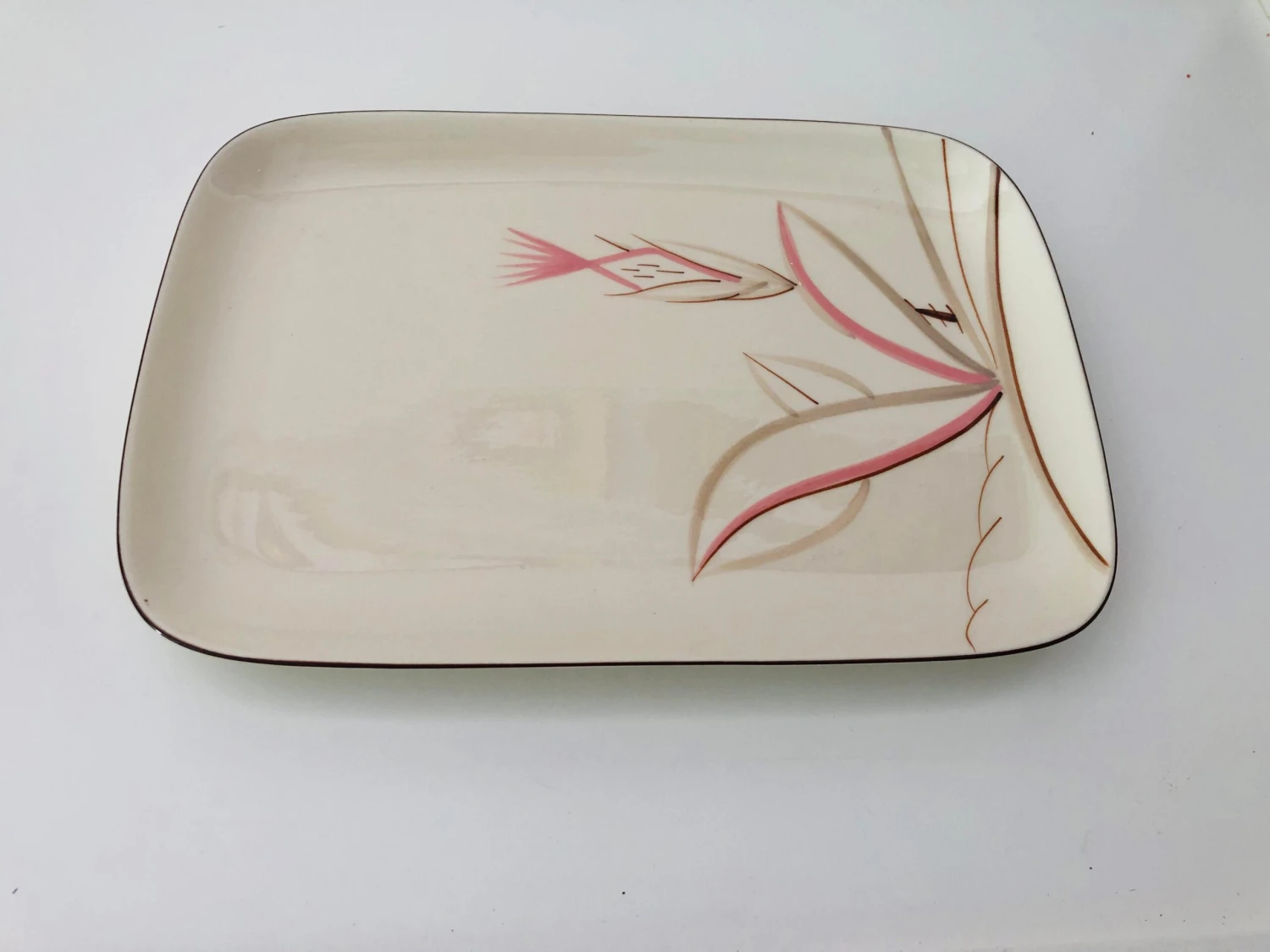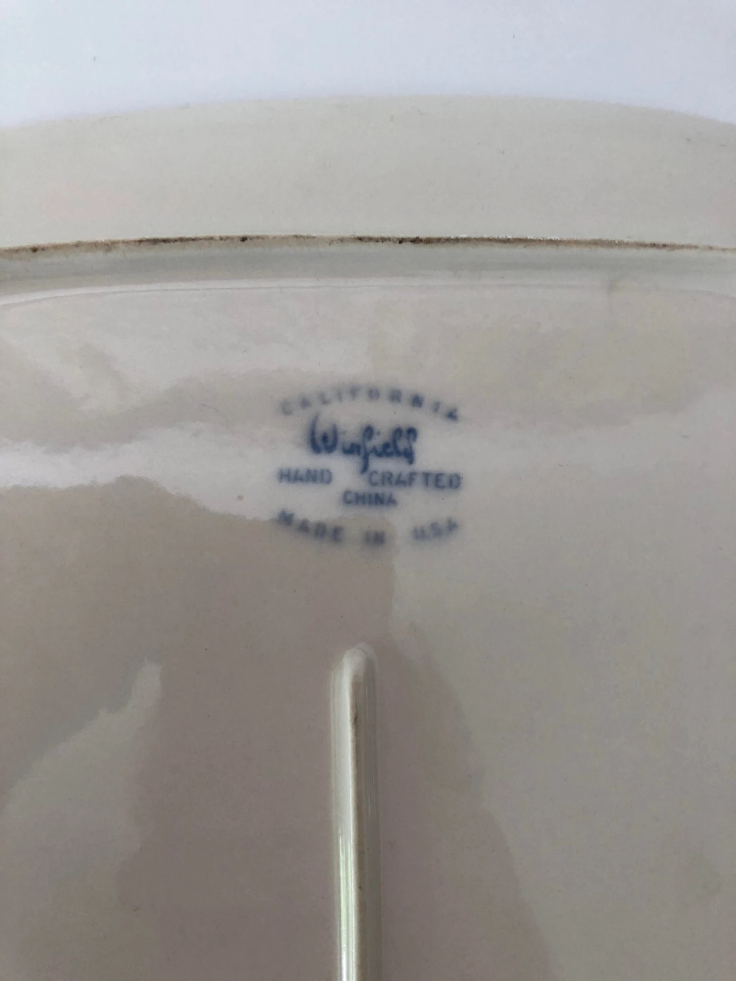 Midcentury Dragon Flower Pattern China Large Platter/ Serving Tray / Serving Dish 14.75″ L X 10.40″W , Makers mark reads ” Winfield Hand Crafted in California ” Excellent condition.