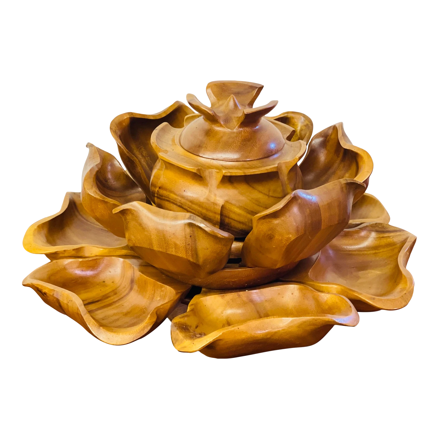 Like new, never used. Gorgeous Polynesian Monkey Pod Serving Set. Perfect conversation piece! Includes 12 bowls and the centerpiece (3 …
