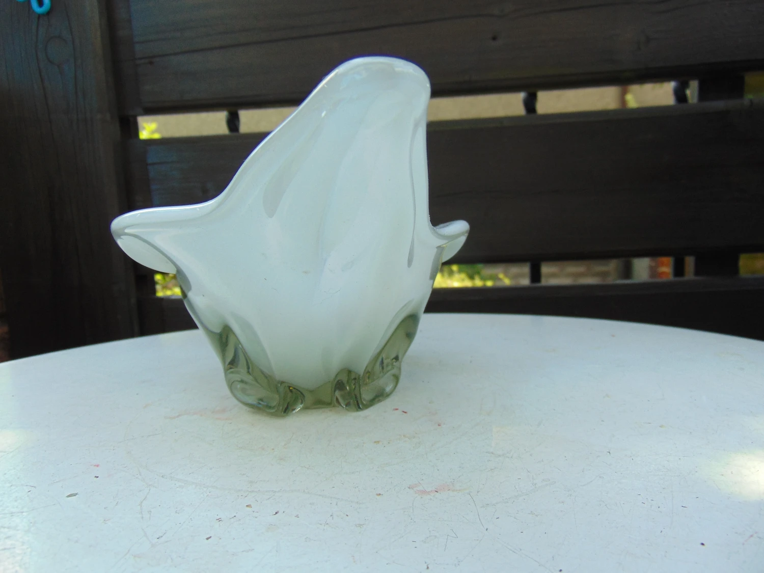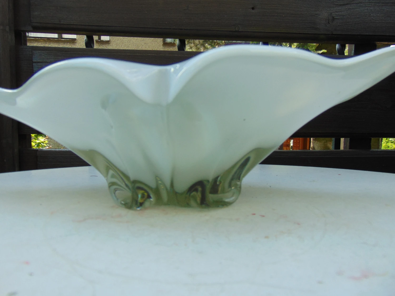 Excellent — This vintage piece is in near original condition. It may show minimal traces of use and/or have slight restorations. Murano platter for cakes, vintage sweets from the 1970s, dimensions: height 11 cm, width 35 cm, depth 15.5 cm.